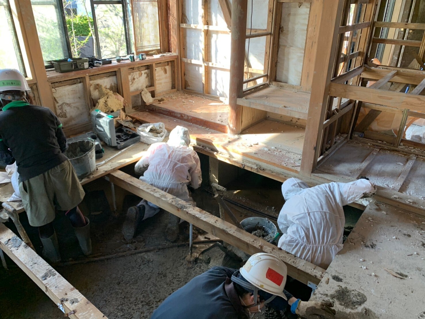 家が泥まみれになり まちに瓦礫が流れ込み コロナで人が寄れない。