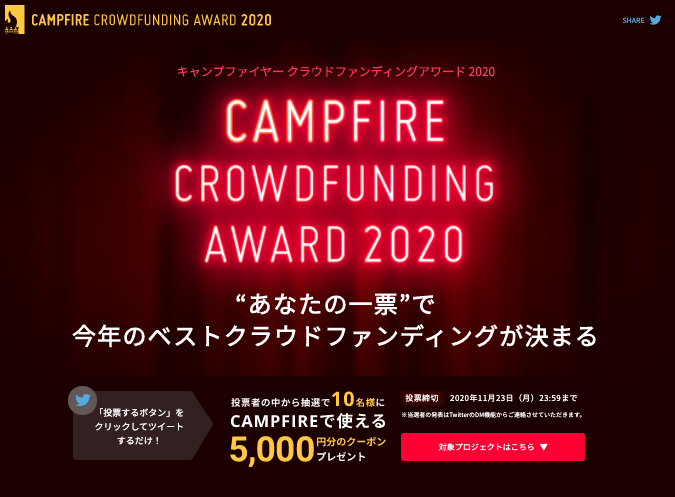 【ご報告とお願い】クラウドファンディングアワードTOP100に選出されました!