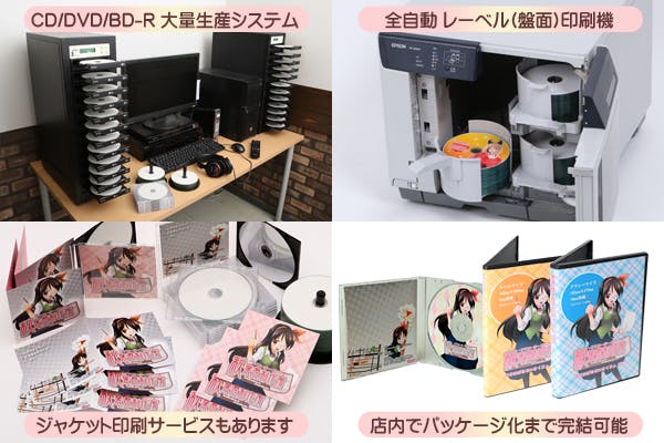 音楽CD、コスプレROM、映像ソフト、同人ゲームなどの大量生産が可能です。