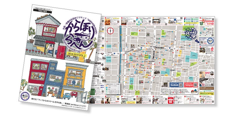 マップ「からほりらへん」を作る会は、2017年から年1回、空堀のお店めぐりマップ「からほりらへん」を発行しています(フリーペーパー) 。