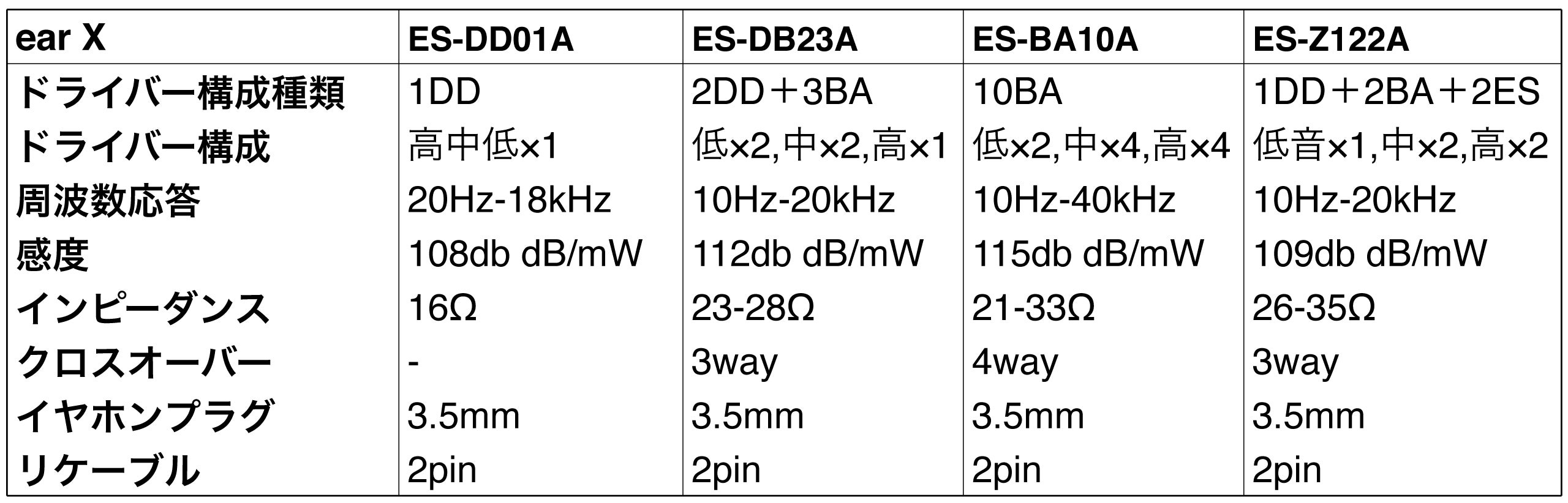 →【earX DD+BA〈ES-DB23A〉】(低音重視・DD2個+BA3個)