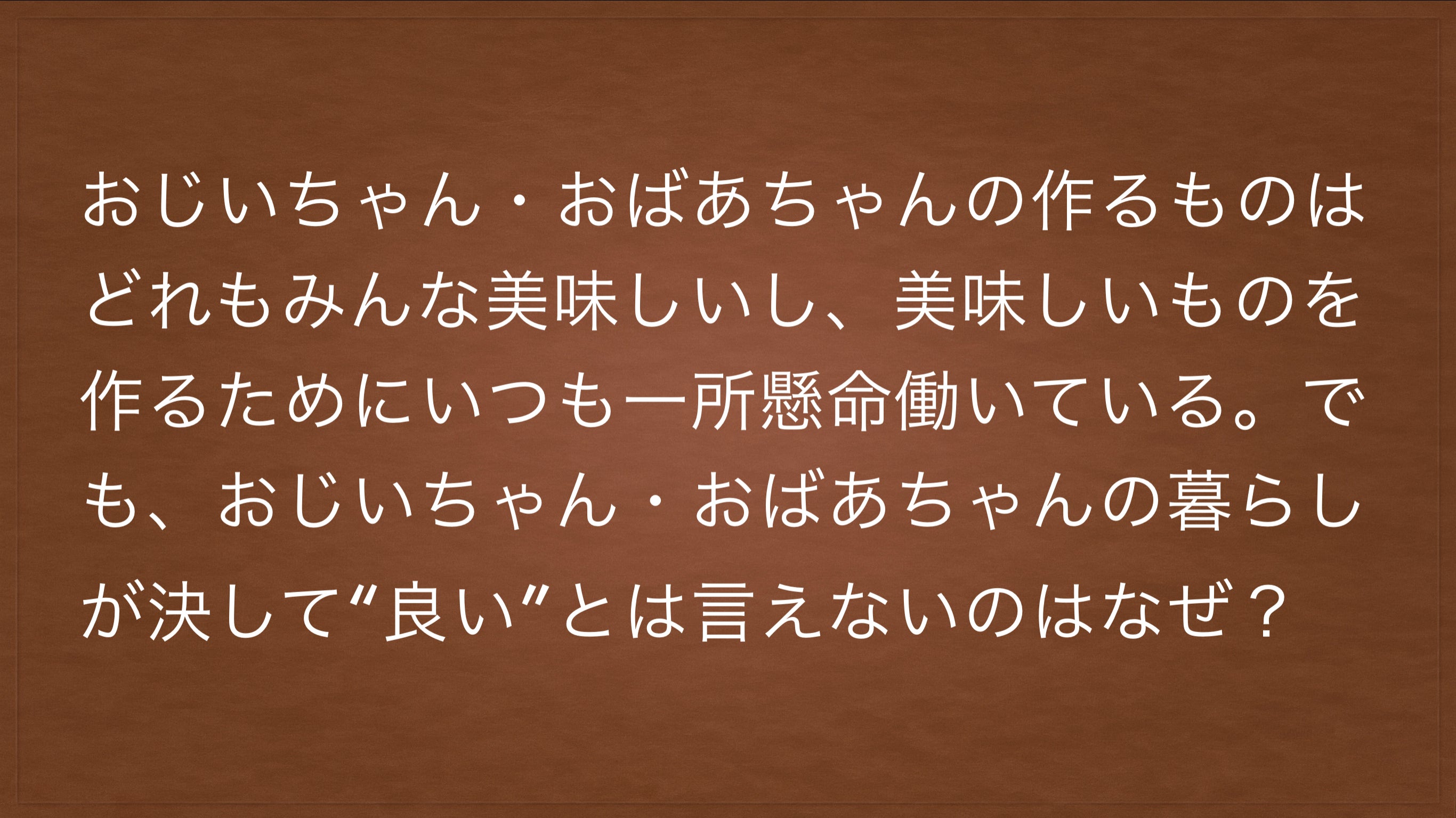彼は、高校2年生の時、農家をしている自分の祖父母の生活を見て、