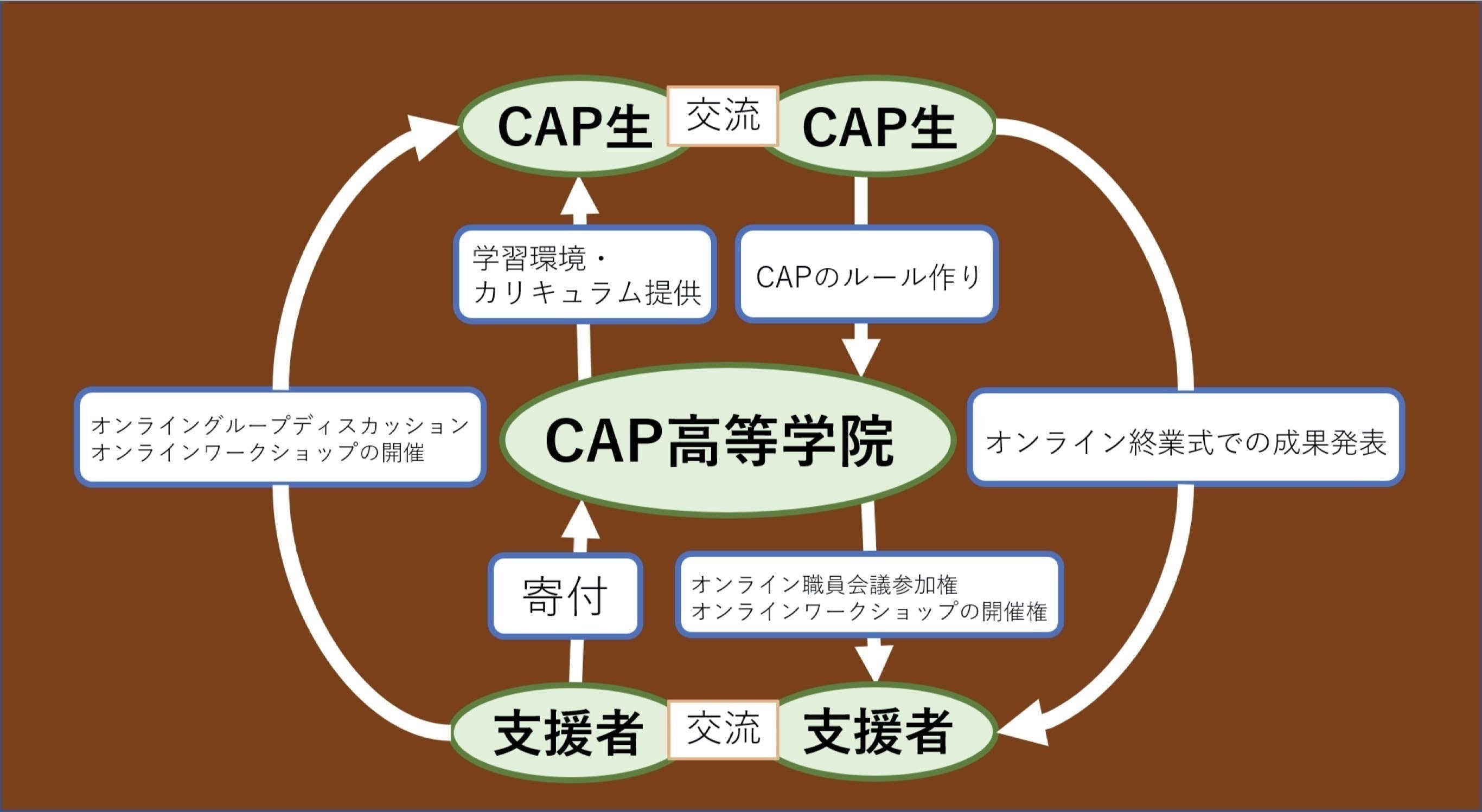 新しい学校作りにチャレンジするCAP生と応援する支援者とをつなぎます。