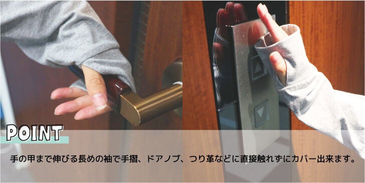 手の甲まで伸びるので、手摺りやドアノブ、つり革など、素肌をカバーしながら握ることが出来ます。