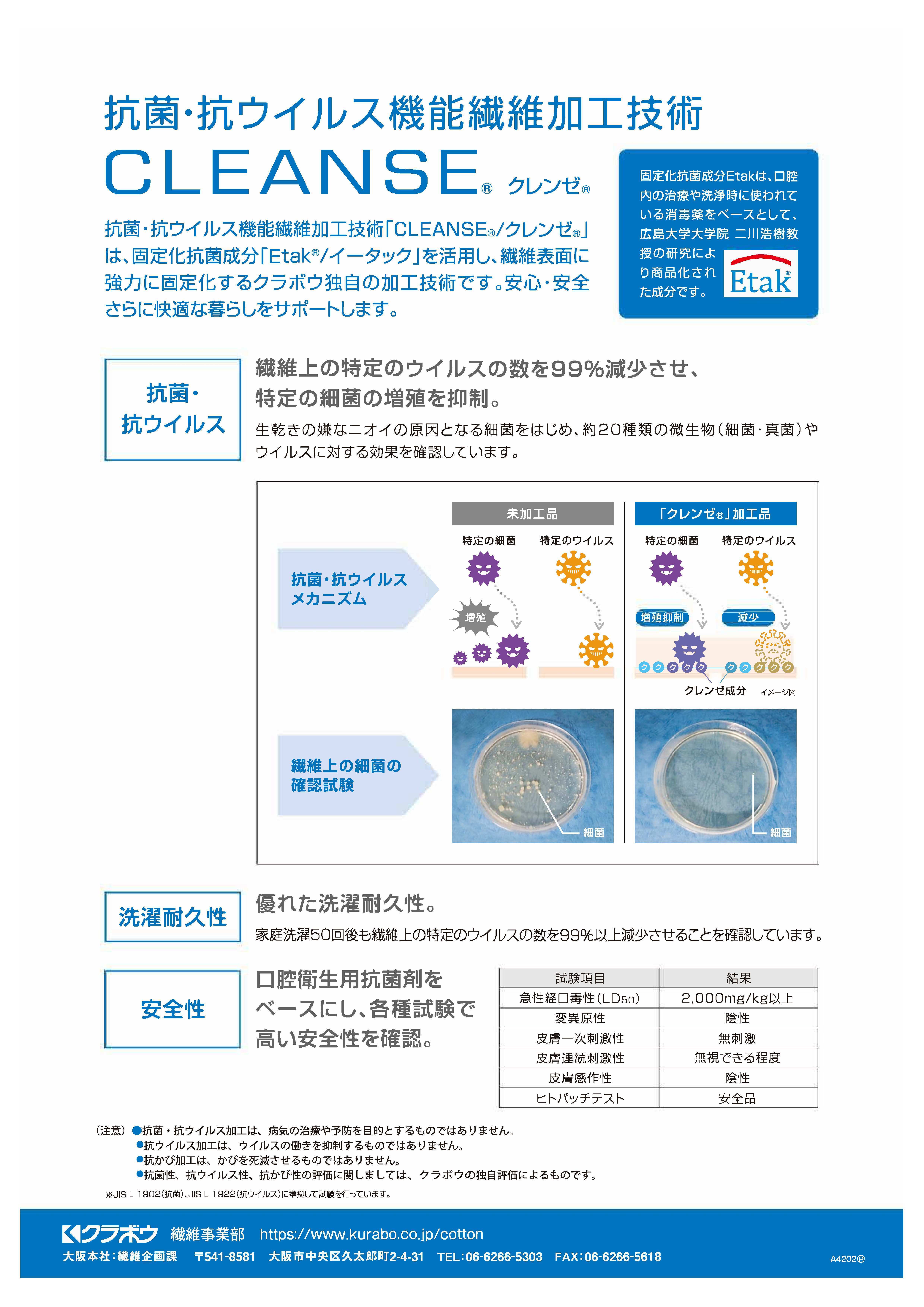※ CLEASEⓇ(クレンゼⓇ)は倉敷紡績株式会社の登録商標です