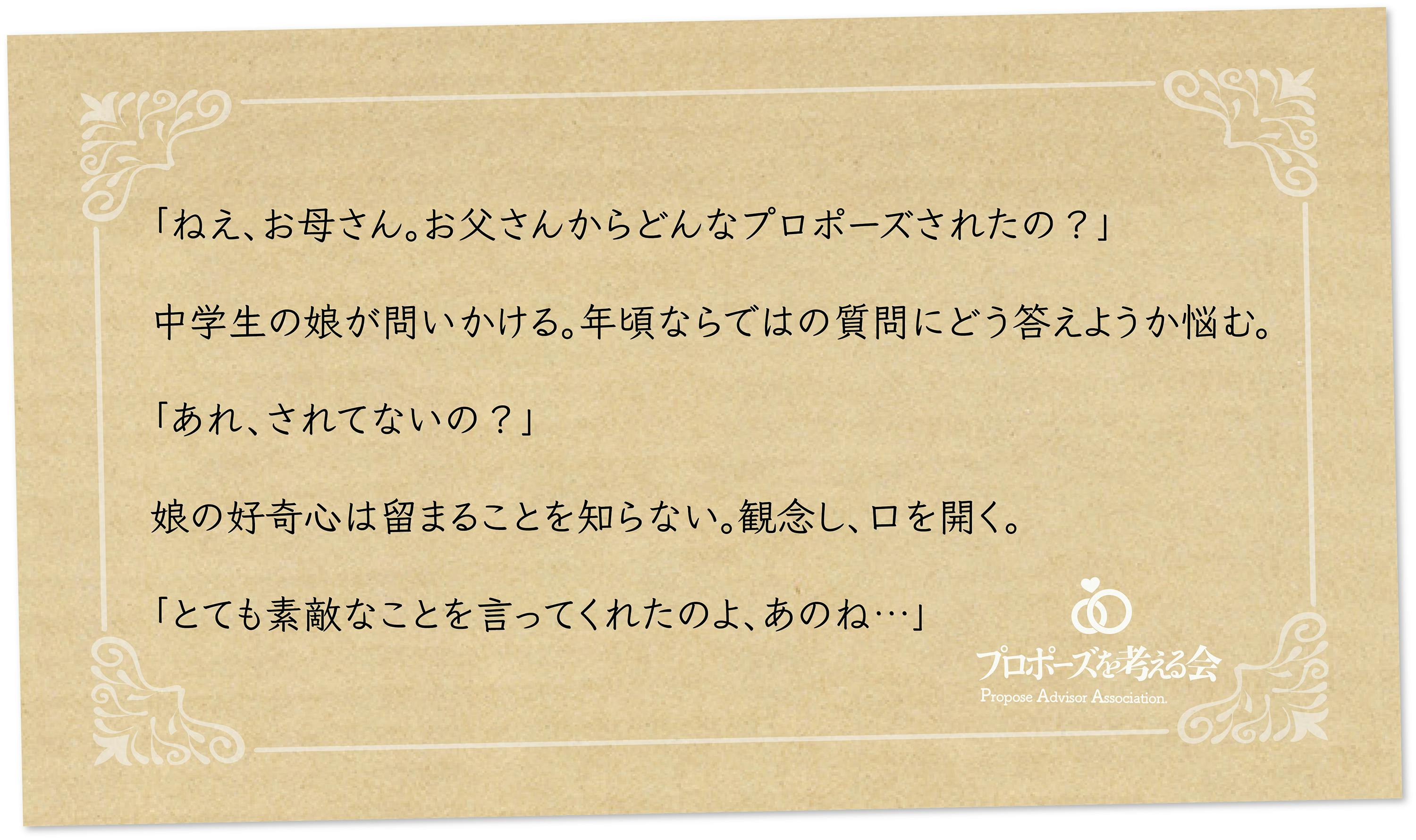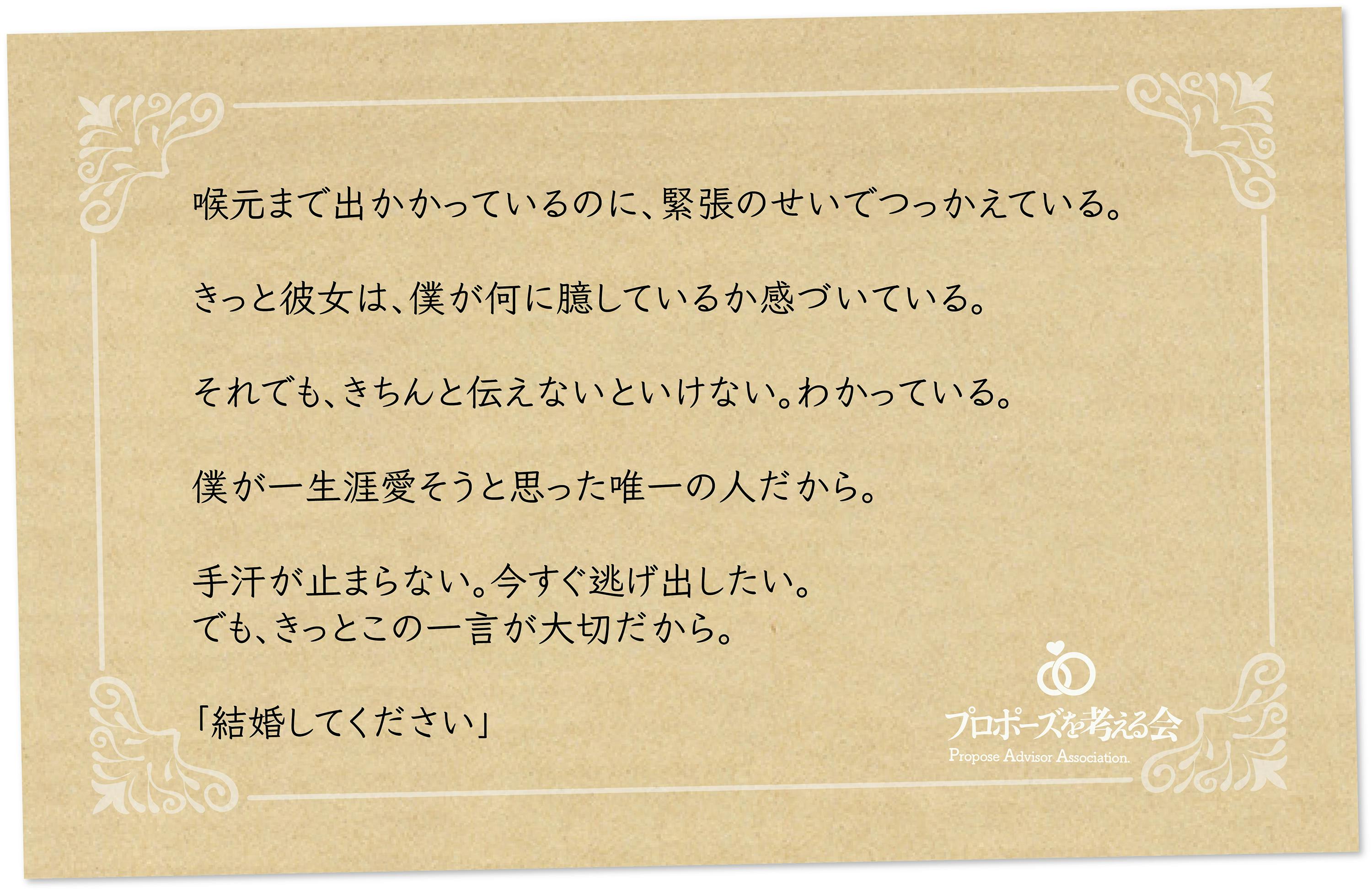 その1つの選択肢として『プロポーズ』を思い出してください。