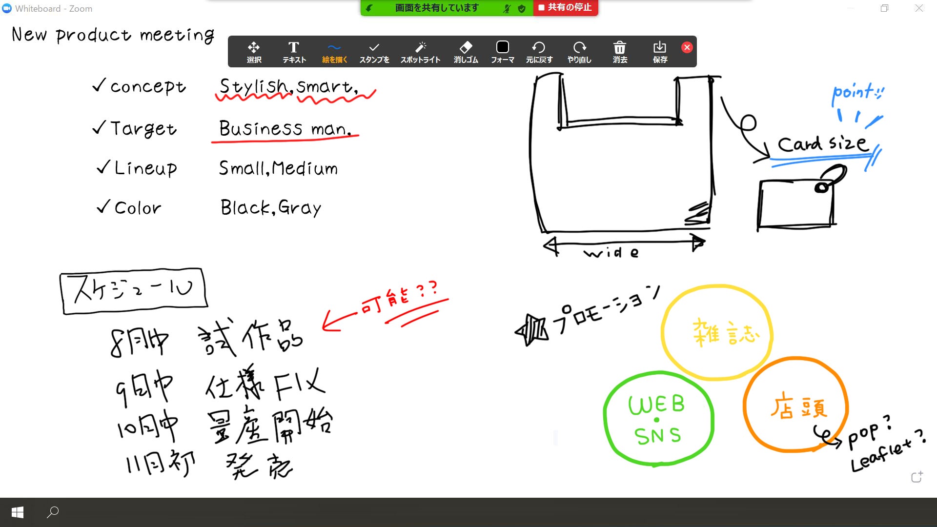 ・共有画面で表示した資料に、マークや文字を綺麗に書き込んでポイントを伝えることができます。