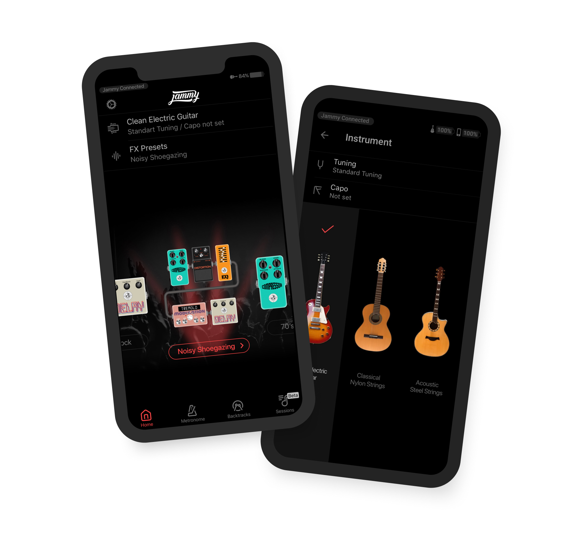 Jammyはアンプに直接接続でき、機能的なコンパニオンアプリがありますが、単独でご使用頂けます。ロックを演奏するには、イヤホンだけで十分です!