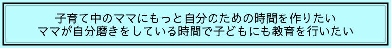 また、ママ友会メンバーの声から、子育てに専念するだけでなく、子育てとキャリアを両立させたい、子育ての合間でもよいから仕事をして、社会とつながりたいと思っているママもとても多いことに気付きました。