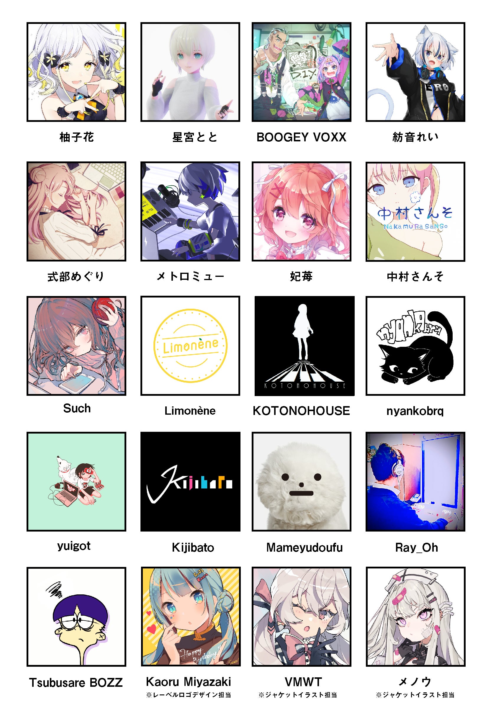 Vsingerを始め、ネットを中心に活動する様々な方面のアーティスト様にお声がけさせていただきました。上記以外にも多くのアーティスト様に今後ご参加いただく予定です。