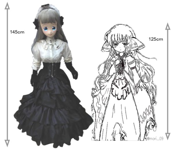 ・頭部が人間よりも大きいので帽子・ウィッグ・ヘアアレンジなど利用するコーデは困難です。
