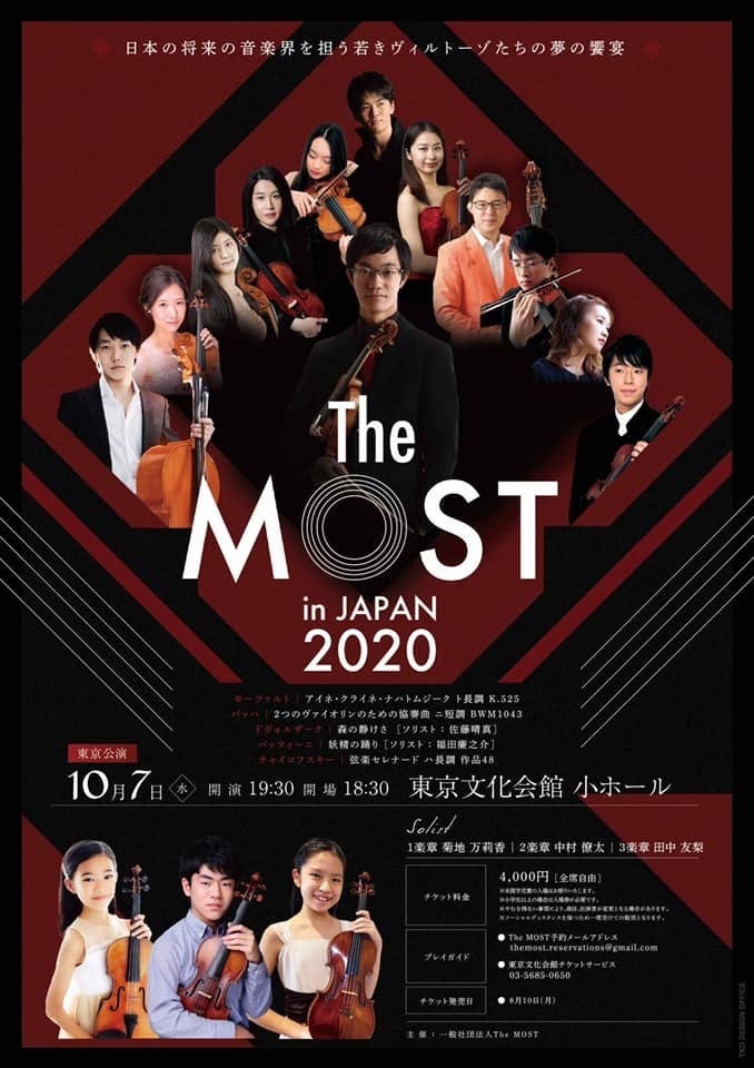 今年5月24日に一般社団法人 The MOSTを設立し、この度2020 年 10 月に初公演、初ツアーとなるThe MOST in JAPAN 2020 を開催させていたただく運びとなりました。 2020年より継続的に続けていこうと思っておりますこのプロジェクトの一番の趣旨は、ツアーを開催する各地方にて10代以下の次世代音楽家を発掘し、大きなホールでの演奏や、日本を代表する音楽家たちとの共演など普段あまり経験することのできない機会を提供することです。彼らの人生にとって何か役に立つことができないかと思い、このようなプロジェクトを始動させました。