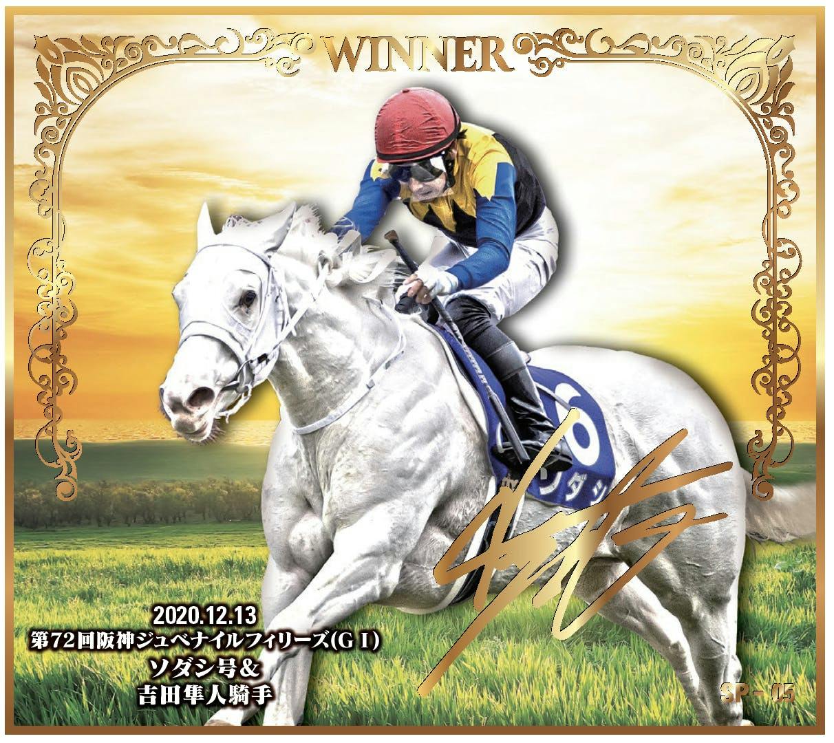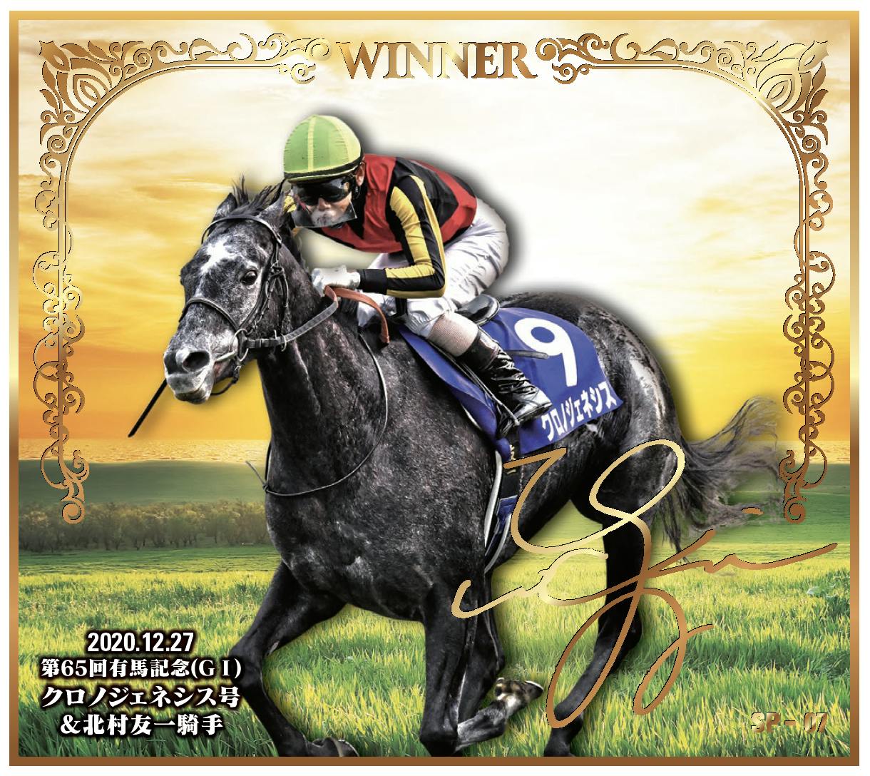 ※画像は箔押しサインですが、リターンの「直筆サイン」と記載のあるものは北村騎手による直筆サインです。
