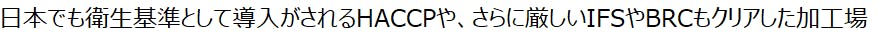 工場は衛生規格のHACCPやさらに厳しいBRCやIFSの基準もクリアしているため