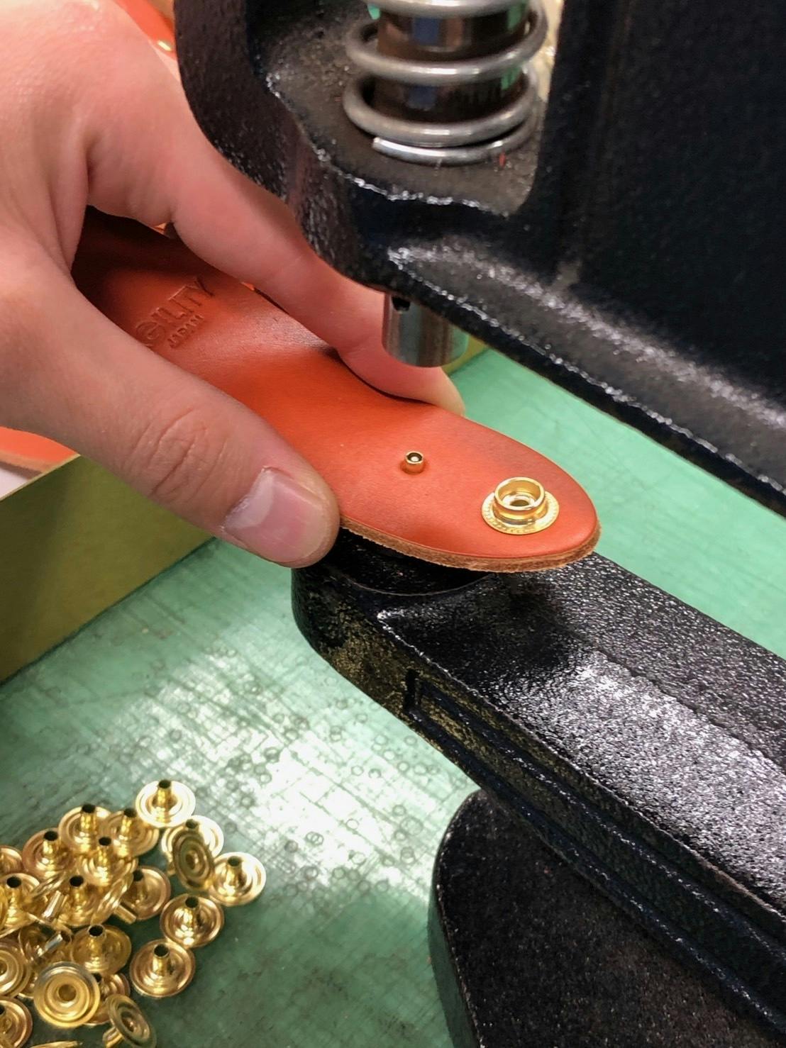 【カシメ打ち】マイバッグホルダーの縫製がスタートしました!!