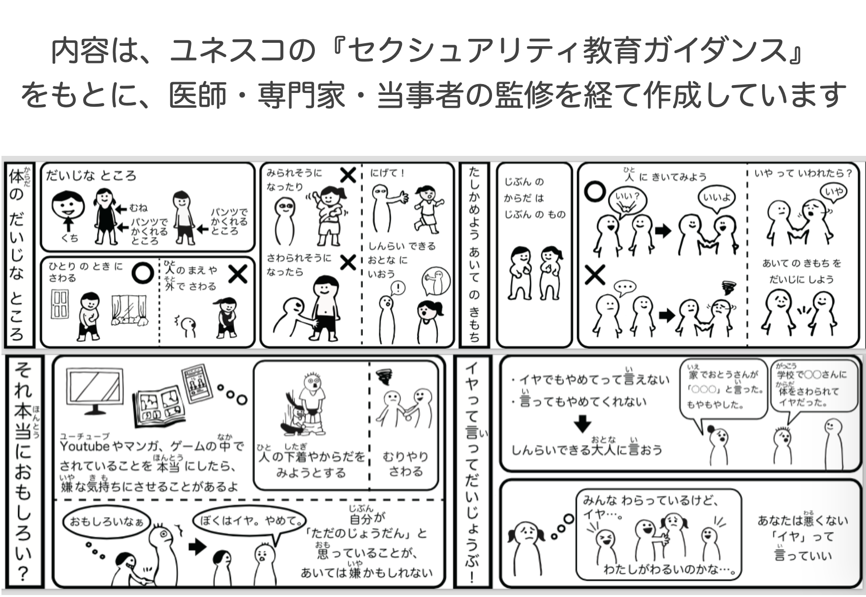 なんども繰り返しますが、性教育は自分のこどもだけに教えたら「もう大丈夫!」なものではありません。自分や、自分の大切な人がこれから安全に生きていくためには、「生きていく社会にいる全ての人の知識水準を高める」必要があるのです。