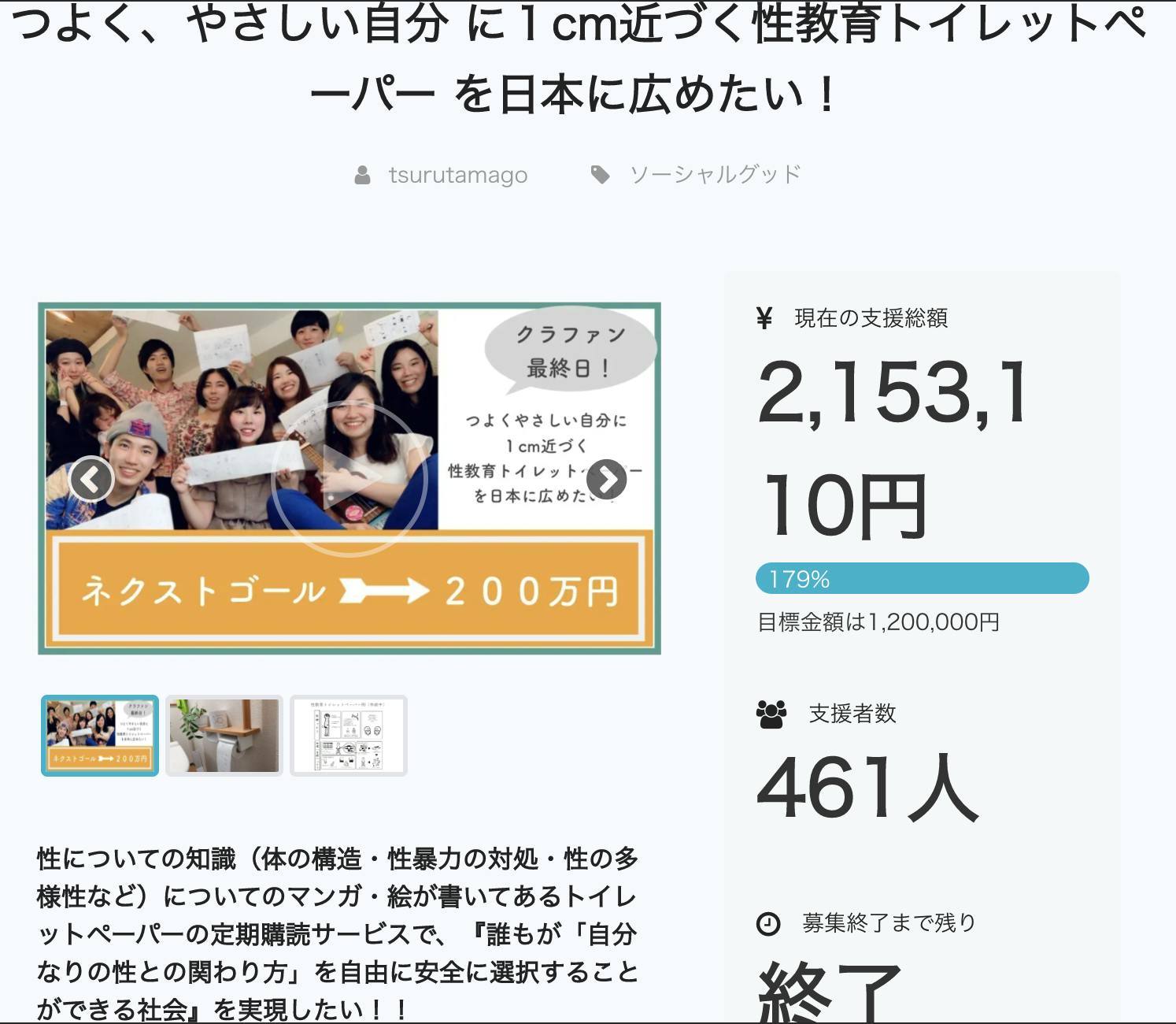 去年行った性教育トイレットペーパーの最初のクラウドファンディングでもたくさんの応援の声をいただきました。詳細はこちらから(現在は、定期購読や年齢にあわせた販売はおこなっておりませんが、活動内容の目的や概要は変わっていません。)