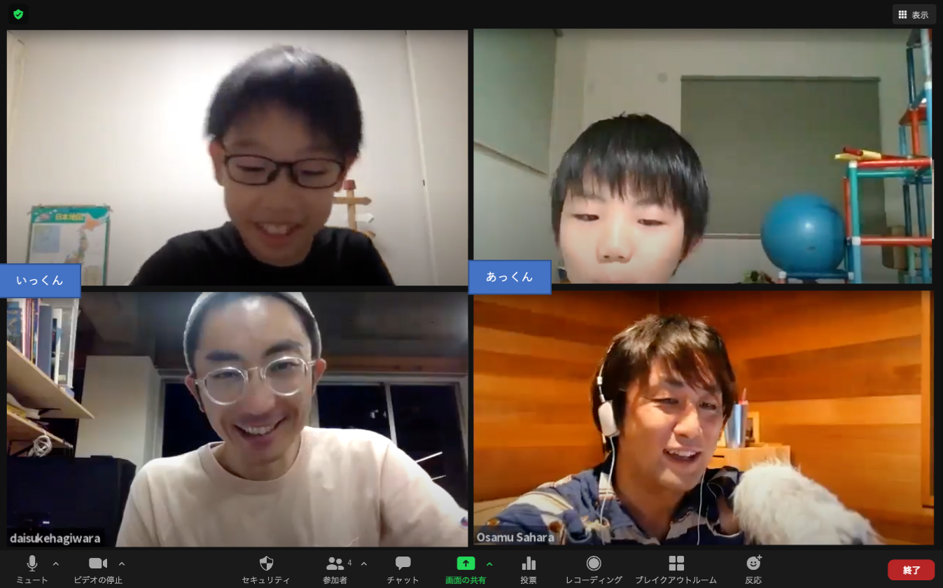 Zoomを使った会議は今まで6〜7回行っています。Zoomを使った会議は初めてだったので、めちゃくちゃ緊張しました。会議にはGoogleドキュメントとか、miroとかいろんなツールを使っていて、いろいろ覚えるのが大変ですが、楽しいです。僕たち小学生2人では今回のプロジェクトは難しすぎると思われるかもしれませんが、専門家の皆さんの力やstudioあおのスタッフのみんなの力を借りながら、このプロジェクトを最後までやり遂げたいと思います。