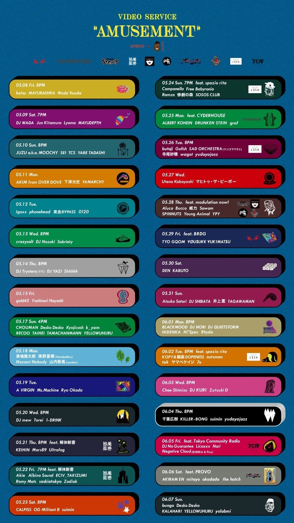 営業自粛後、通常営業ができない中で私達が出来ることを模索し5月8日〜6月7日にかけてVIDEO SERVICE "AMUSEMENT”という1ヶ月間にわたる配信プログラムを立ち上げました。