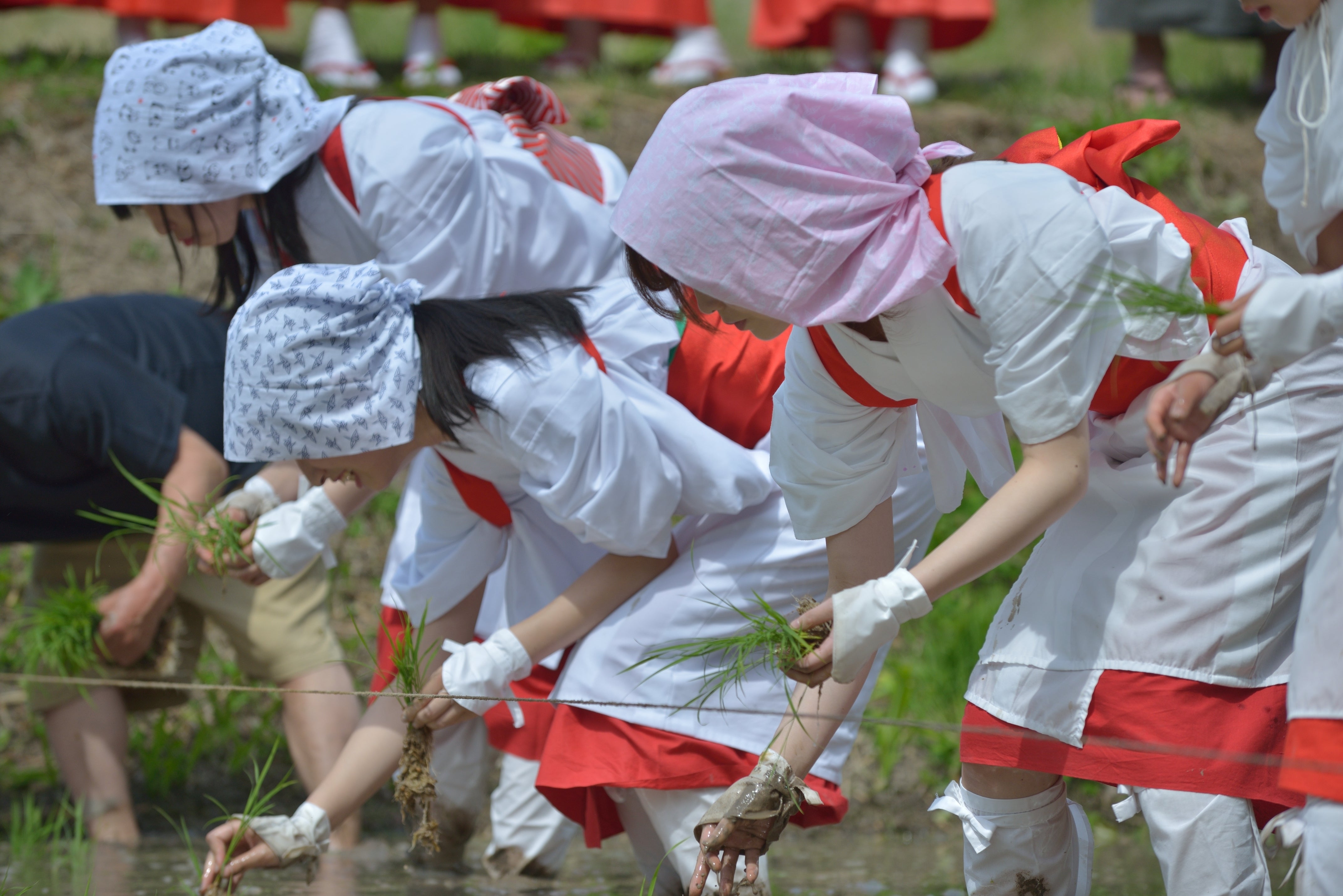 平成27年「御田植祭復活」 田植歌と早乙女による手植え(昭和20年頃より途絶える)