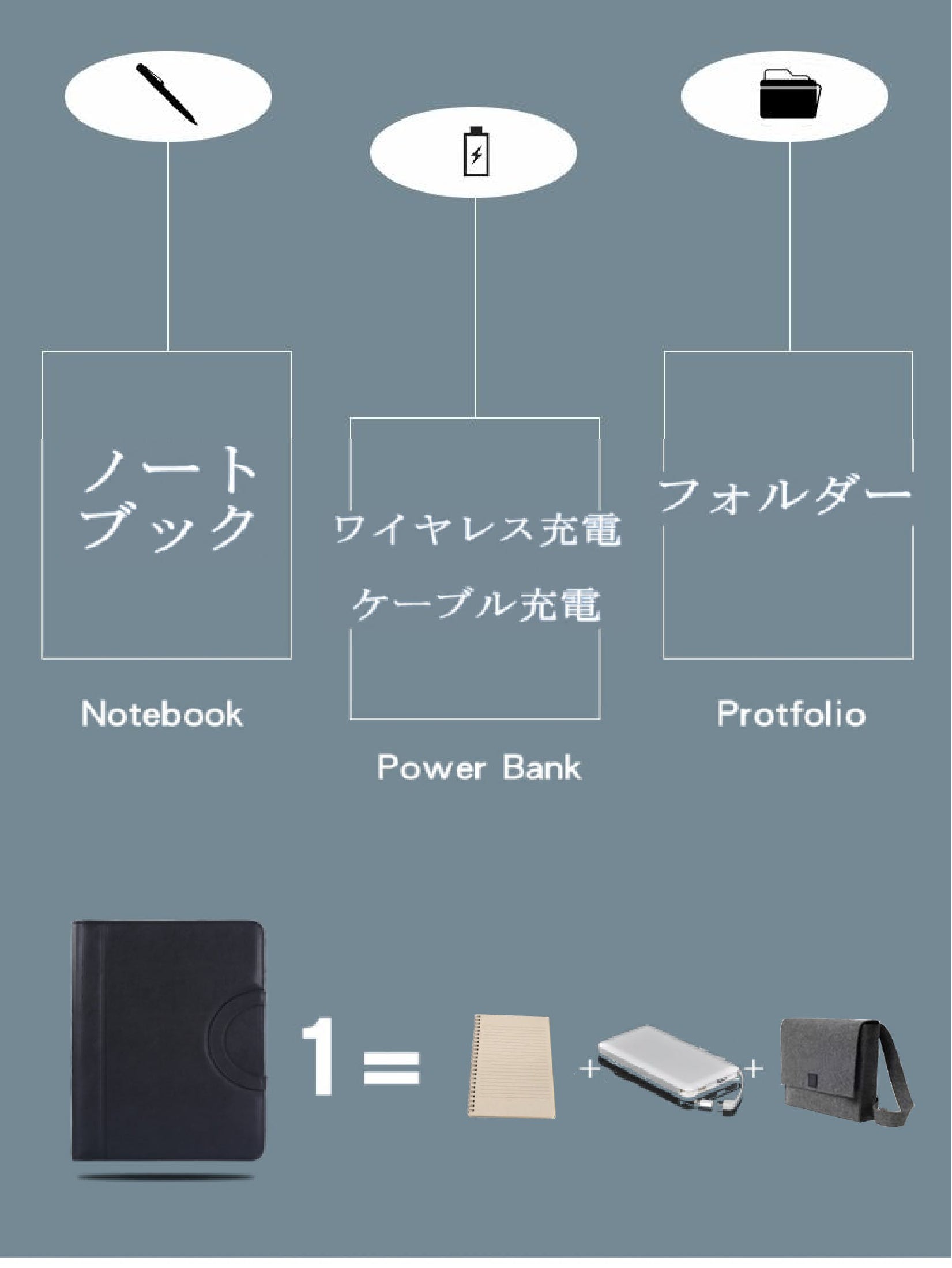 こちらの多機能フォルダー「EGO」は、中身をすっきりと仕分けて、さらにビジネスツールであることを最優先に考え、ワイヤレス充電ケーブル充電スタンドカルキュレーターなどの機能を充分に備えていて、PU材質のスタイリッシュなデザインでビジネス用に重宝します。