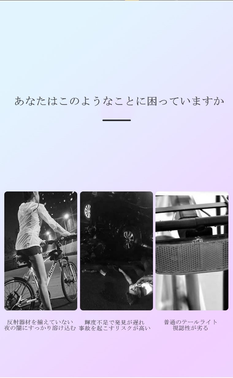 道路の走行時、危険が潜んでいますが自転車用スマートライトさえあれば、上記の問題が全部解決できちゃいます!