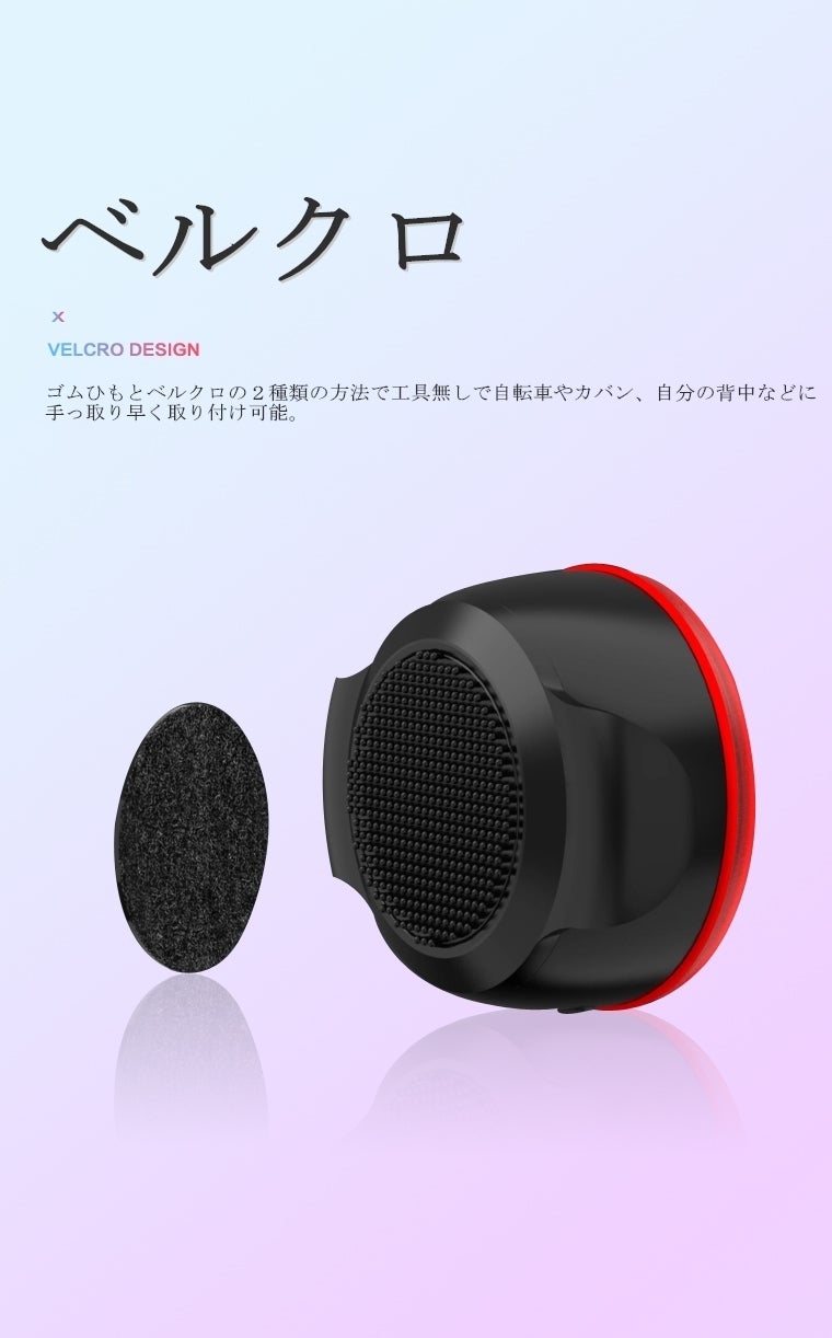ゴムひもとベルクロの2種類の方法で工具無しで自転車やカバン、自分の背中などに手っ取り早く取り付け可能。