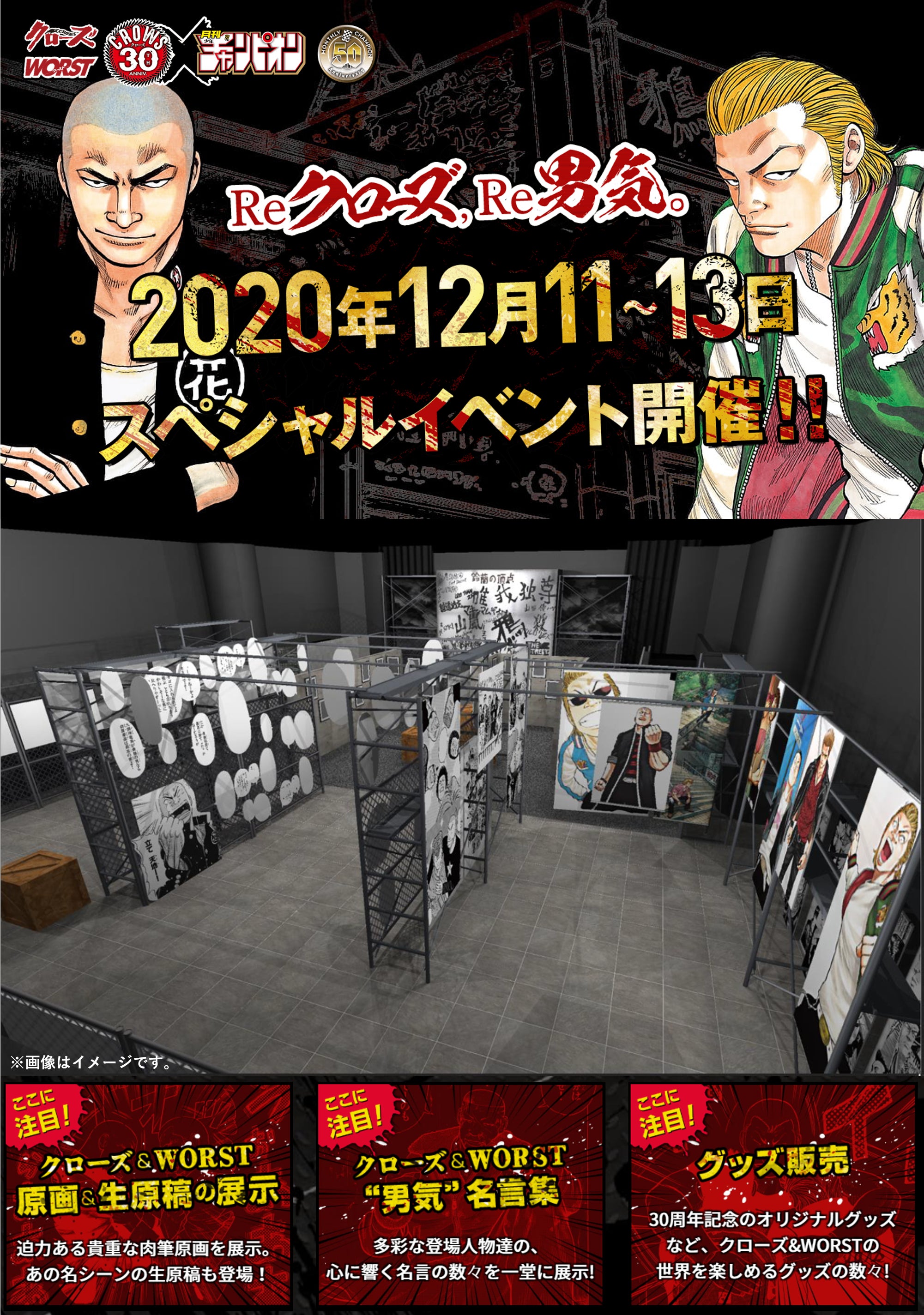 この度、クローズシリーズ生誕30周年×月刊少年チャンピオン創刊50周年を記念して、これまで応援してきてくれた皆さまへの感謝の気持ちと、これからもっともっとクローズ&WORSTシリーズを盛り上げたいという思いで、2020年12月に「クローズ史上最大規模のスペシャルイベント」を実施いたします!