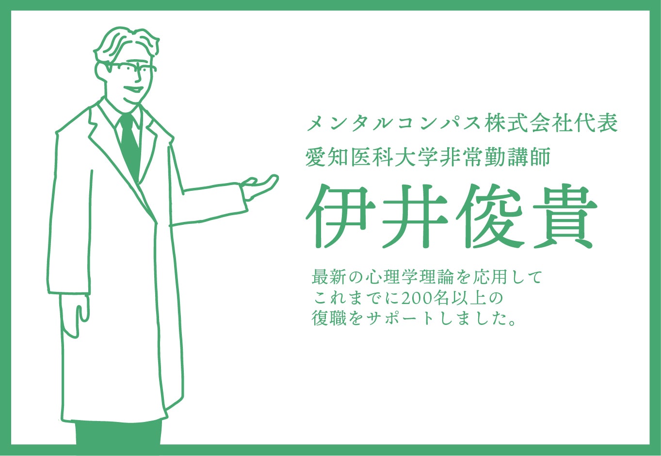初めましてメンタルコンパス株式会社代表・愛知医科大学非常勤講師の伊井俊貴です。