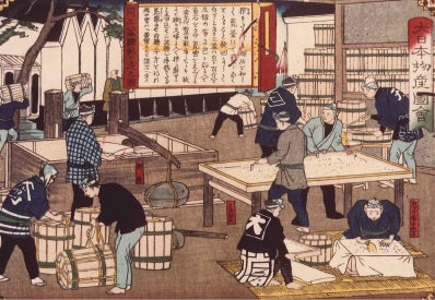 江戸時代の和三盆作り(讃岐国和三盆製造之図 広重図)
