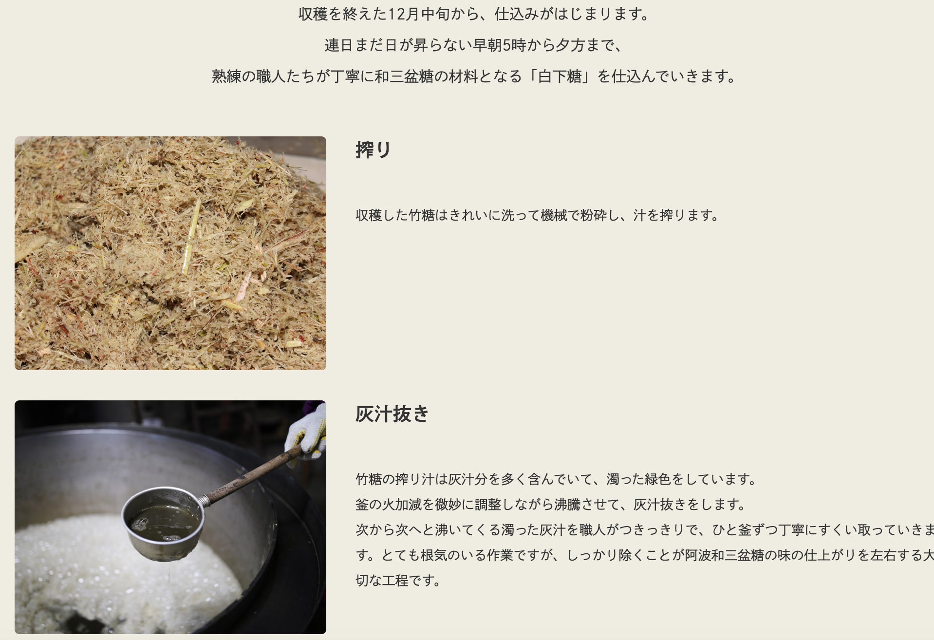 私たちがずっと大切にしているのは「竹糖」だけを使った和三盆糖づくり
