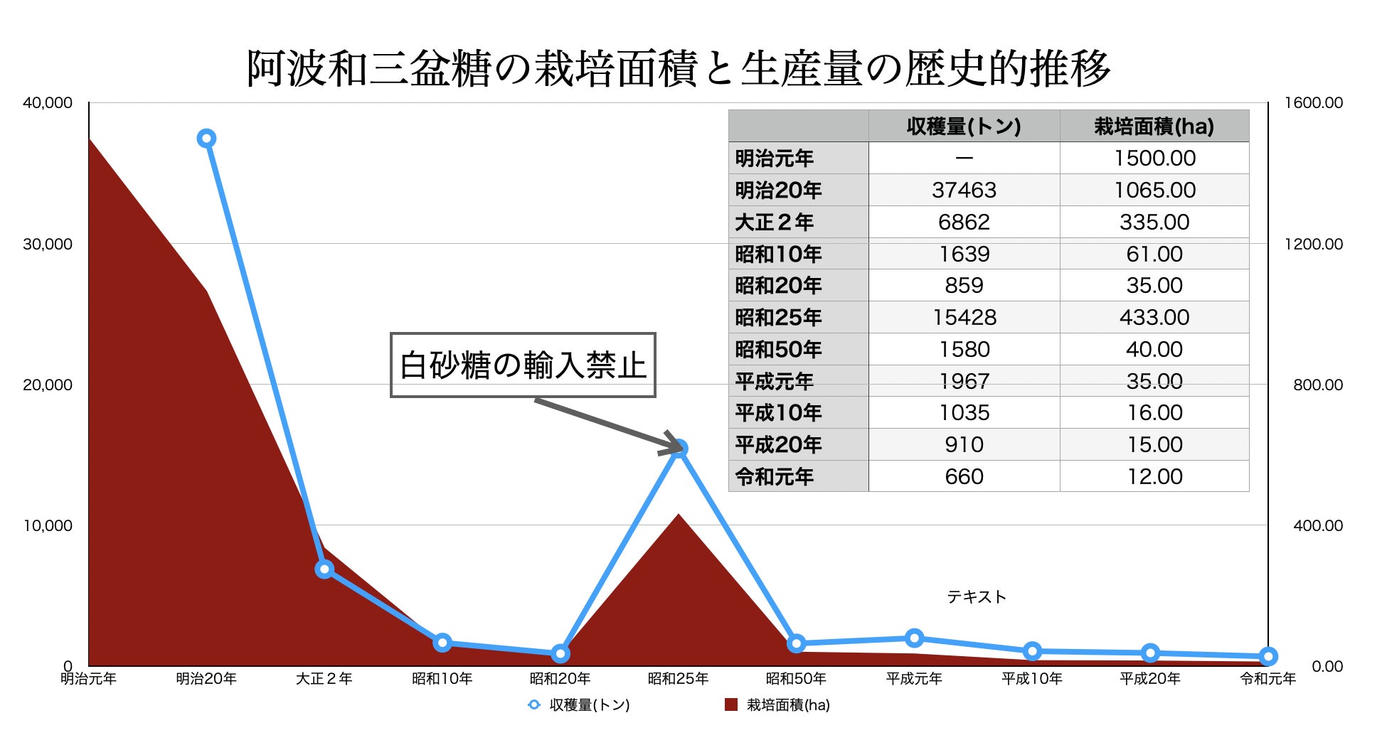和三盆糖は、戦後、輸入のストップにより一時的に生産量が増えましたが、その後は平成の前半までは減少が続きました。近年は生産面積や生産量はほぼ横ばいに近い形で推移しておりますが、少しづつ減少をしているのが現状です。
