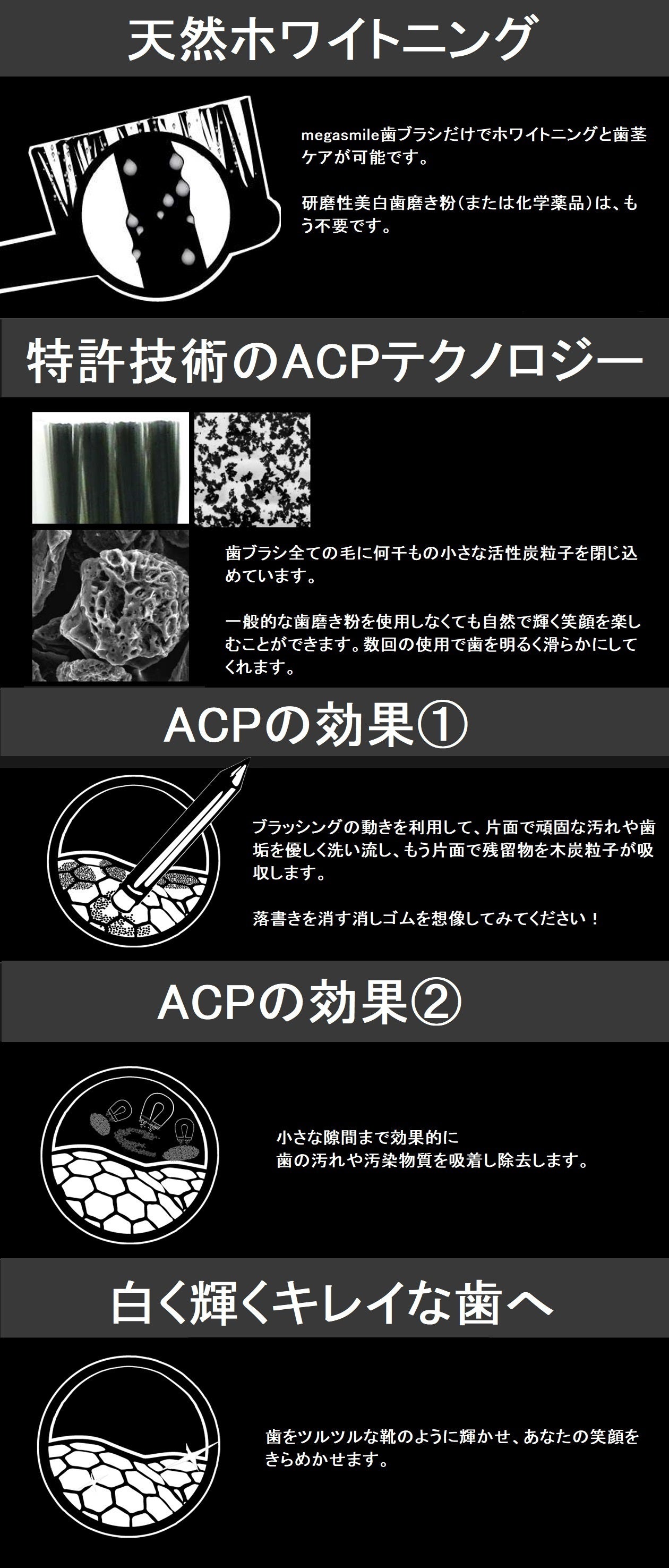 また、ACPテクノロジーは歯を光沢にする機能も持っている為、使用した人は自分の歯が滑らかに変化したことをすぐに感じることができます。