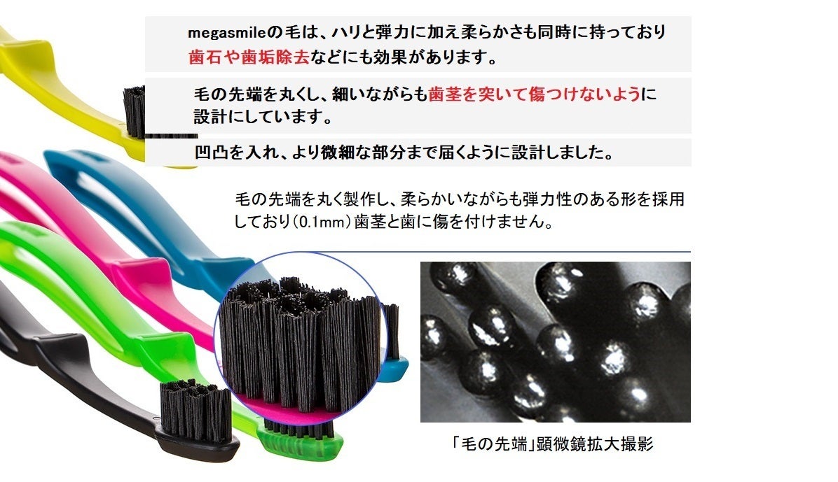 そこで今回、歯茎ケアや通常の歯ブラシとしての機能はもちろんのこと、ホワイトニングにも効果のある歯ブラシ「megasmile」ブラックホワイトニング歯ブラシをご紹介致します!