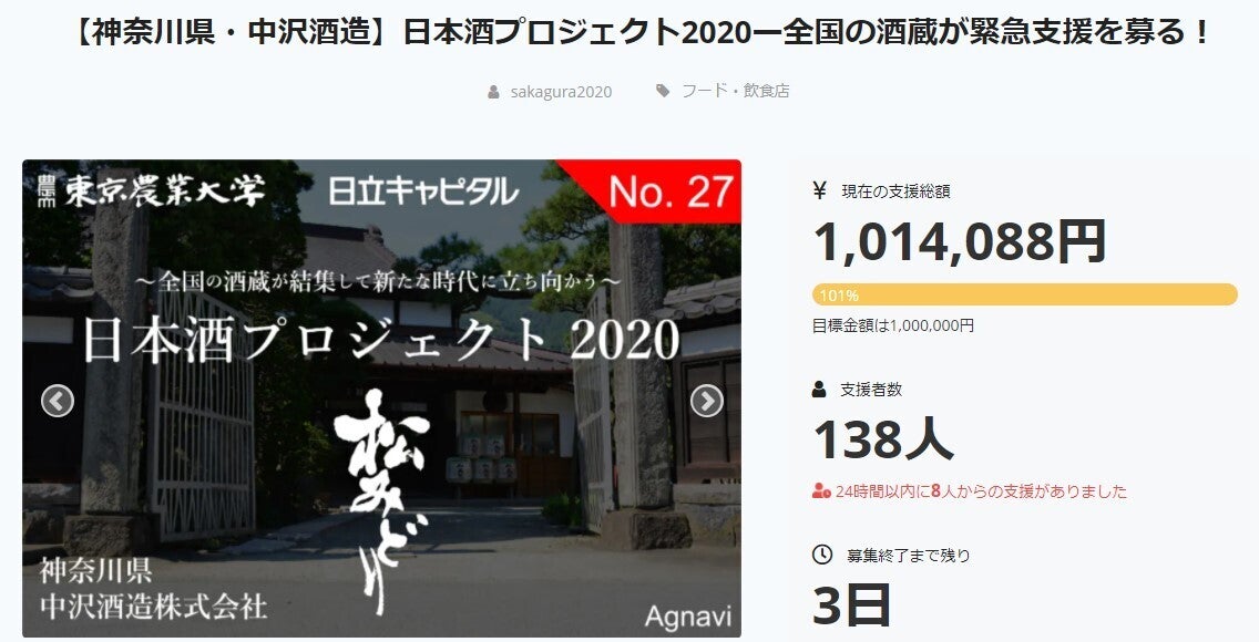 【急伸中!まもなく終了!】日本酒プロジェクト2020は”残り36時間”で終了致します!