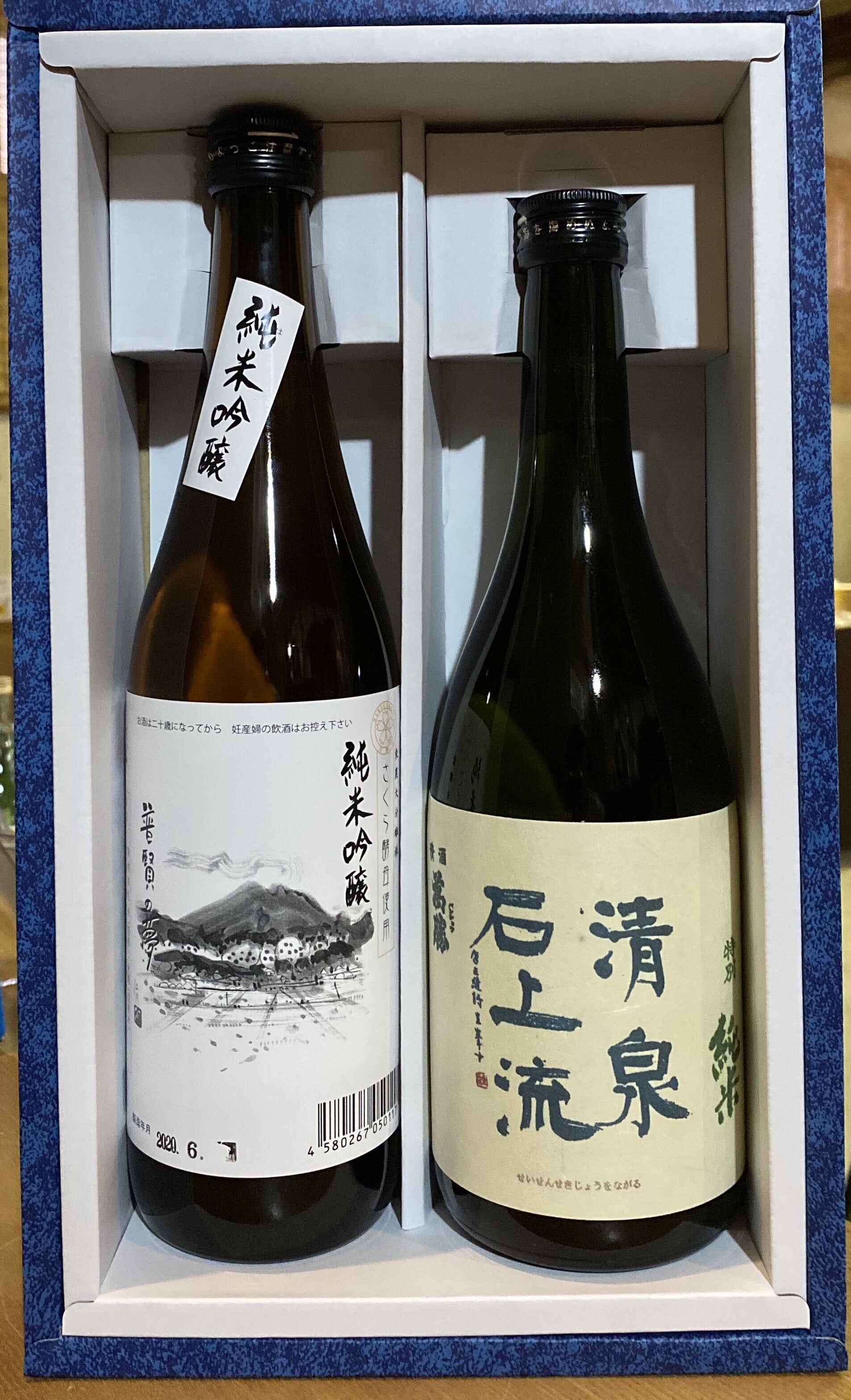 <銘柄①:普賢の夢・純米吟醸酒720ml (左)>