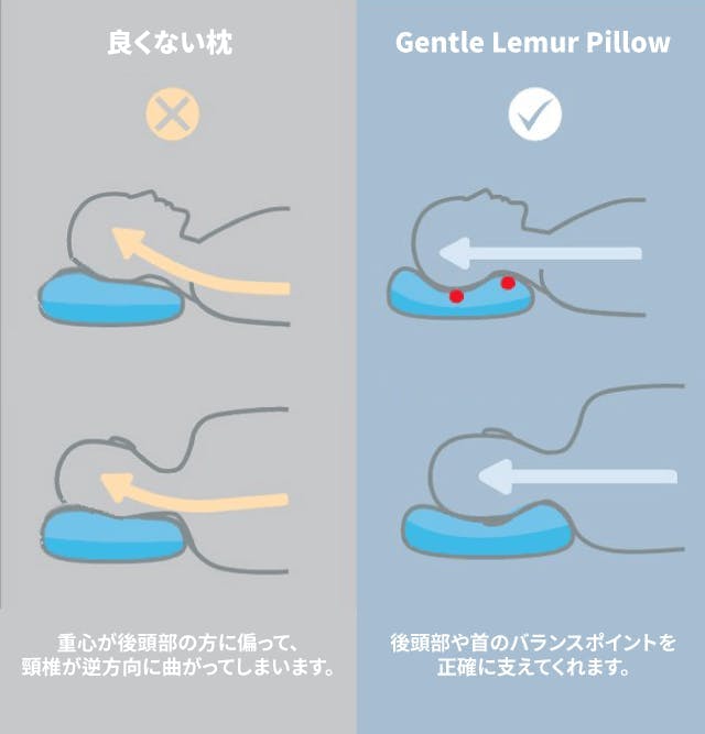 ジェントルリーマピローは、人間の本来の頸椎の骨格であるCカーブに合わせて作られたため、使い初めからフィットし、寝心地が良い方は頸椎が正常だということです。逆に、枕を使ったところ、どこか不自然で合わない感じがすれば、それは枕がおかしいのではなく、自分自身の頸椎が変形している可能性があります。