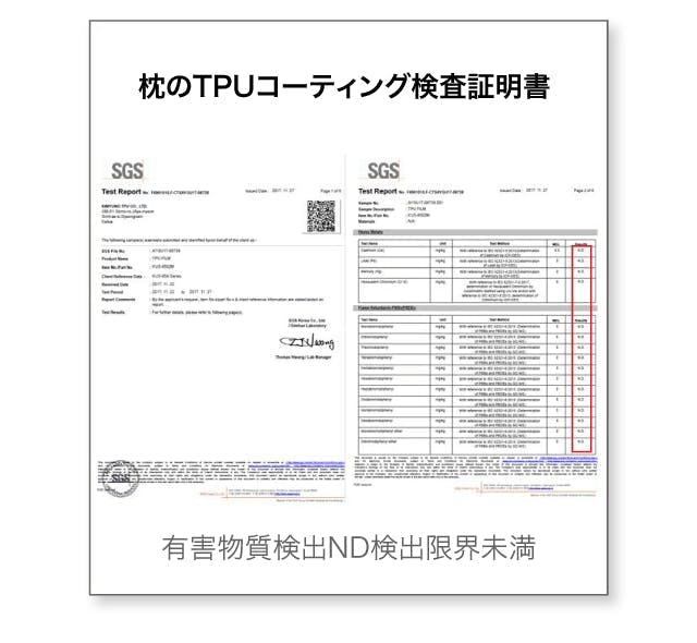 枕のコーティング材質は、TPU(Temperature Polyuretane)です。