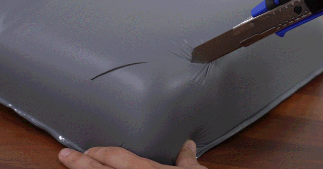 いくら引っ張っても破れません。テンションは、494kg/㎠の力で引っ張れば破れるほどで、伸びる長さは502%と、伸縮率が優れており、変形や変色がない最先端の新素材です。人間の力ではなかなか破れません。