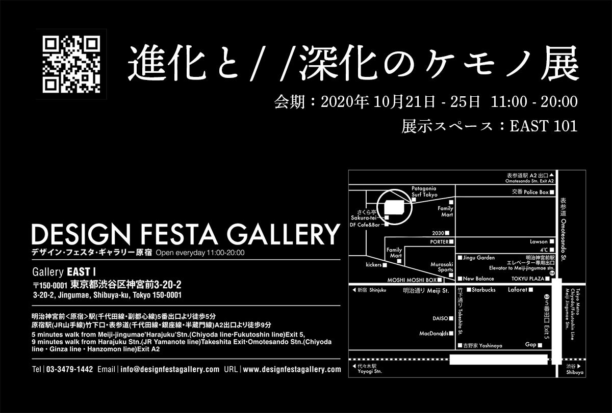 この度、東京のデザインフェスタギャラリー原宿にて展示を開催する運びとなりました。一度5月の開催が中止となってからwithコロナの時代と向き合った展示になるよう現在も検討を重ねています。