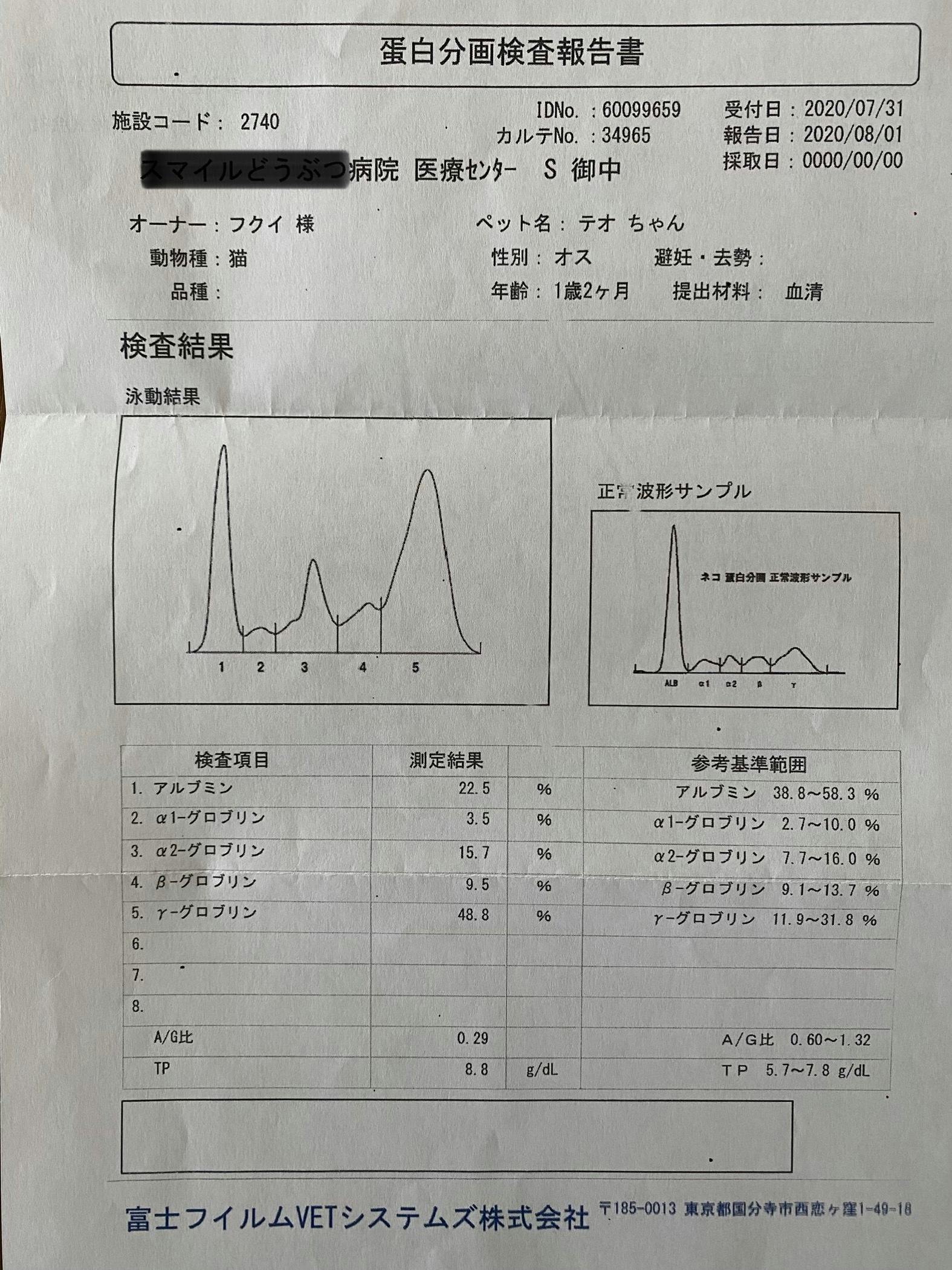 2020/11/27 08:30血液検査の外部機関の結果連絡がありました。AG比0.68との事で低めです。まだ注意が必要となり、発熱が無いかよく見て行かないといけません。便秘の方は調子良い様です。また、何かありましたらご報告します。 もっと見る