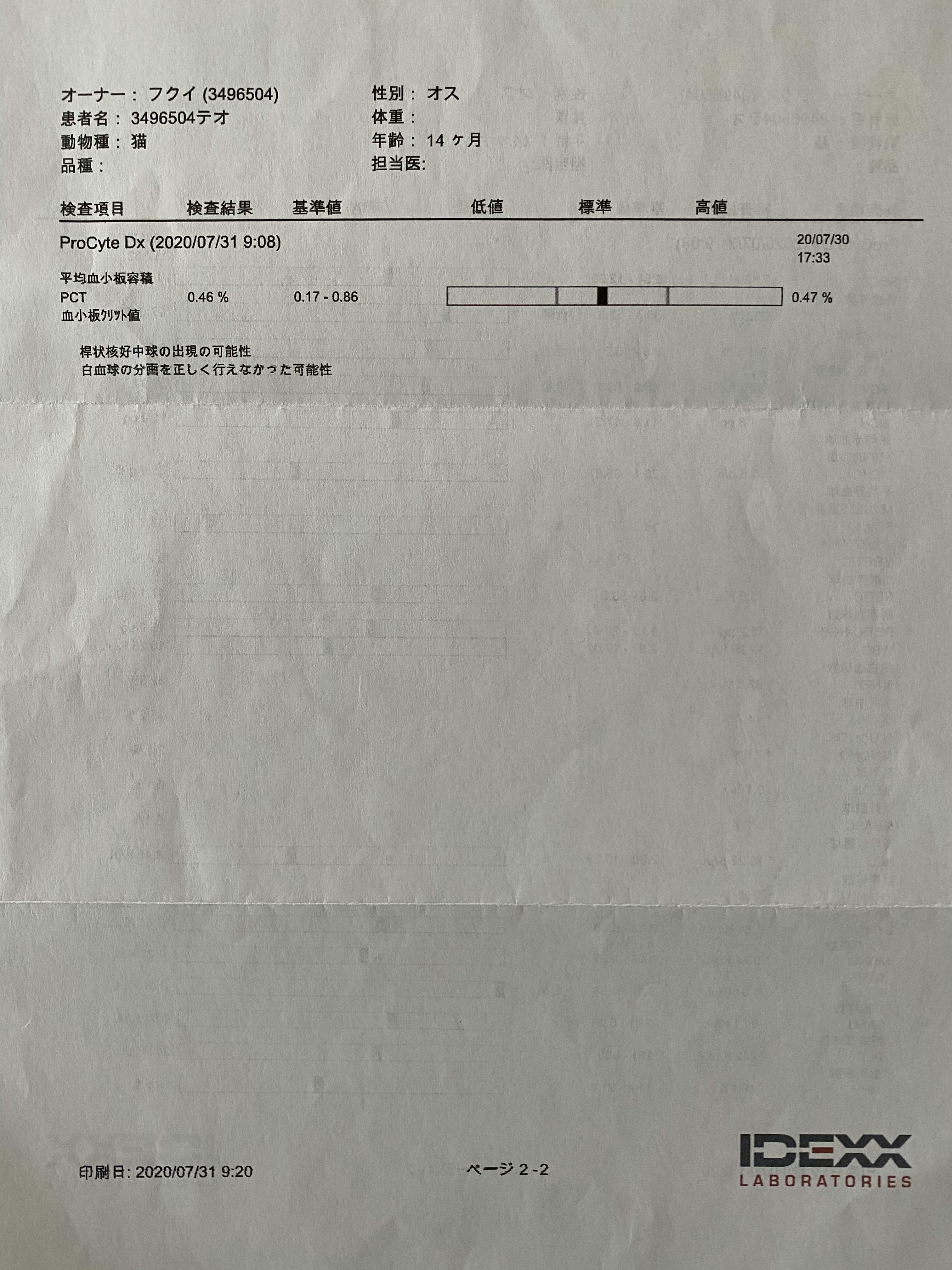 投薬終了から1ヶ月の検診結果です