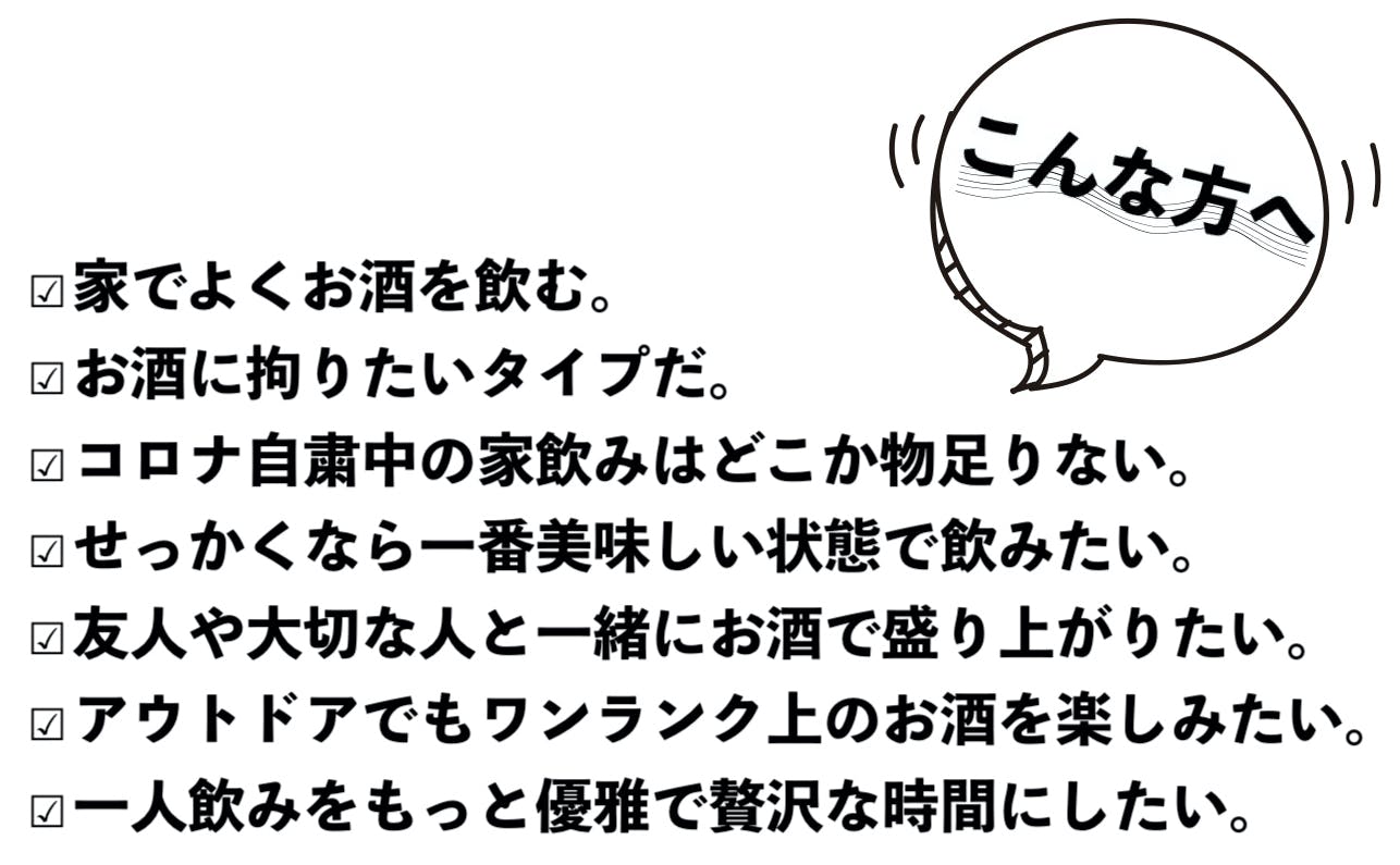 愛酒家のために、もっとお酒を美味しく楽しめる製品を開発・販売してきました。