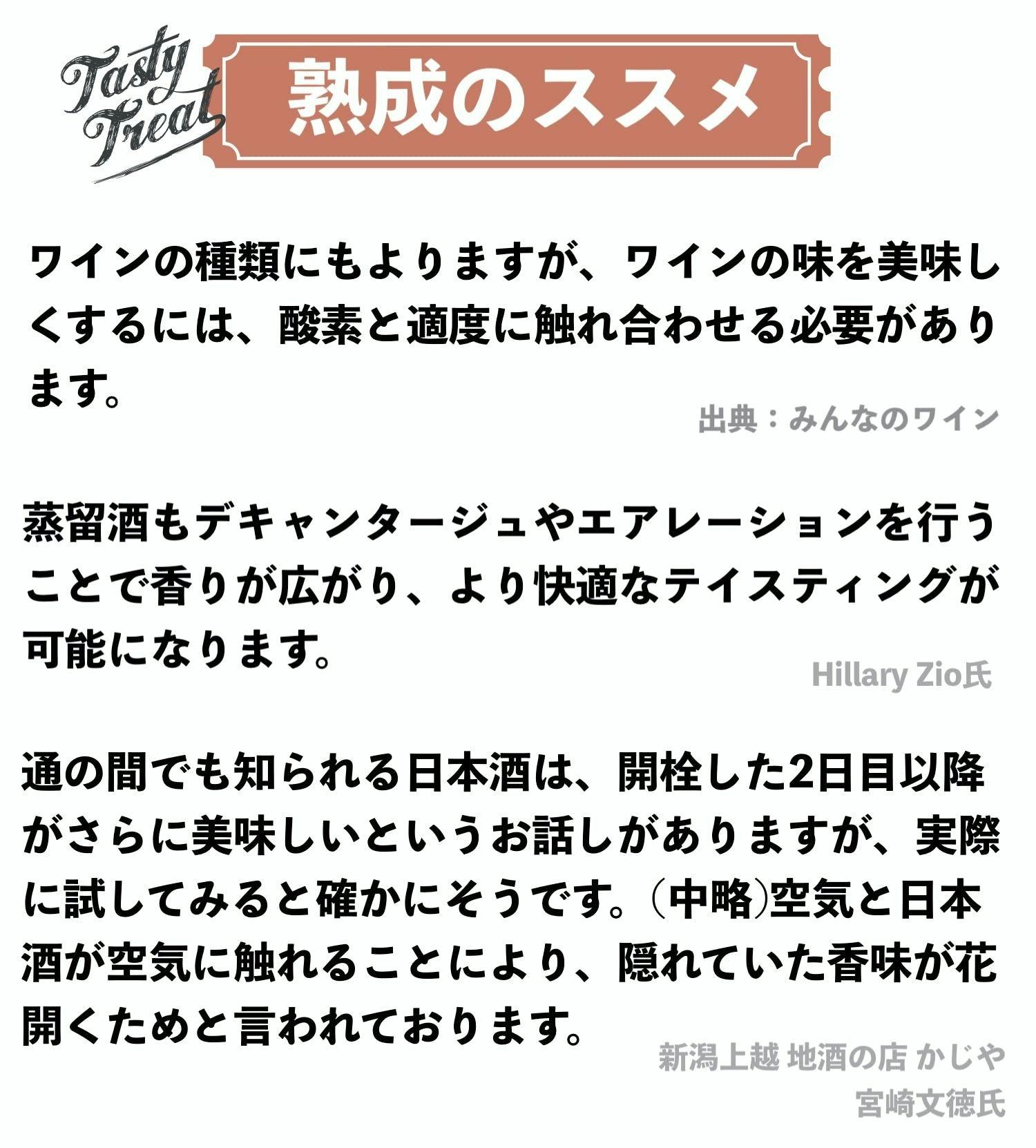 長時間かかってしまう理由は注がれたお酒の表面から少しずつしか酸素を取り込めないためです。