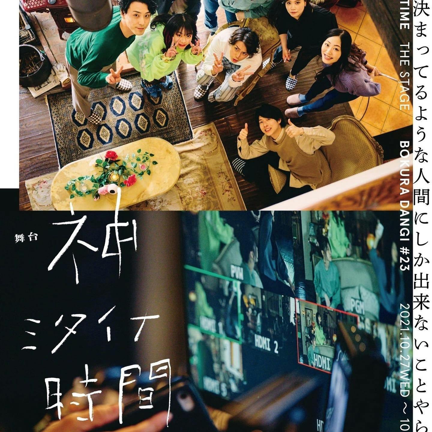 2021/10/21 21:2910月公演中止に伴う劇団存続の為の支援と中止舞台作品映画化の為の支援プロジェクトへのご支援。誠に有難うございます。間も無く舞台『神ミタイナ時間』上演が始まります!!本作は、昨年10月舞台にて上演予定だったボクラ団義の舞台作品を、クラウドファンディングプロジェクトを経て、舞台版から映画作品化したものです。その映画作品の劇場公開を10月22日〜予定している中、この映画版を、更に舞台版として上演いたします!!……………………………企画演劇集団ボクラ団義 vol.23-死ぬのが決まってるような人間にしか 出来ない事やらせてくれ−舞台『神ミタイナ時間』作・演出 久保田唱・キャスト【bokura-dangi】沖野晃司大神拓哉平山空春原優子添田翔太福田智行内田智太高橋雄一花崎那奈緑谷紅遥大音文子【guest】谷佳樹今出舞吉田宗洋・公演スケジュール2021年10月27日(水)~31日(日)10月27日(水)18:0028日(木)13:00/18:0029日(金)18:0030日(土)13:00/18:0031日(日)14:00(全7回公演)※収録回…28日(木)13:00/18:00※配信回…28日(木)18:00開場は開演時間の45分前、受付開始は1時間前です。☆来場者特典【キャストボイス】プレゼント!ご来場頂いた全てのお客様に、『キャストからの感謝メッセージ』をプレゼントさせて頂きます!各回ごとに収録させて頂いたメッセージ(YouTubeによる音声のみの動画メッセージ)のQRコードを会場内に貼り出させて頂きます!ご自身のスマホなどで読み取って頂き保存する形となります。読み取りの機械が無い方、方法が分からない方はご連絡下さいませ。別の方法をご案内致します。※10月27日(水)より公演の舞台『神ミタイナ時間』を劇場にてご観劇くださったお客様へのプレゼントとなります。※プレゼントは非売品です。ご来場者への特典でございますので、転売やSNSなどでの公開は固くお断りさせて頂きます。・会場CBGKシブゲキ!!〒150-0043 東京都渋谷区道玄坂2-29-5 ザ・プライム 6階・チケット情報□前売り 6,900円(税込)□超先行予約限定ピンポイント指定席 7,900円(税込)※1□当日券 7,500円(税込)□タスケテシート 10,000円(税込)※2□ LIVE配信&アーカイブ視聴チケット3,500円(税込)※3全席指定情勢上、今公演の入場は開演の2分前までとさせて頂きます。入口での検温等、通常の公演より時間を要します為ご了承下さいませ。開演時間を過ぎてのご来場のお客様は、開演後係員の指示に従って頂きご入場となります。また上記の事から、開演10分前を過ぎてご来場の場合も、指定のお席にご案内出来ない場合がございます。お早めのご来場をお願い致します。※1 超先行予約予約期間:2021年9月4日(土)21時~9月10日(金)23時59分超先行予約のみの販売です。カンフェティより“全座席”の中から、お好きなお席を“ピンポイント”でご予約頂けます。※2 タスケテシート座席自体は、前売り予約でご予約頂ける席と差はありません。名前の通り、「タスケテ」の気持ちでこの券種を作らせて頂きましたが、こちらをお選び頂かなくてもご予約頂けるだけで十二分に感謝しております。せめてもの気持ちで、予約特典としてボクラ団義メンバー全員の直筆サイン付きポストカードをつけさせて頂きます。何件ご予約頂いても必ず直筆で書かせて頂きます。※3 配信3カメスイッチングでの配信でございます10月28日(木) 18:00回の公演の生配信から、アーカイブ配信として2週間、11月11日(木)18:00までご視聴いただけます。☆本作の映画化に関するクラウドファンディングで、本舞台の【超超優先予約権】を返礼品に含むコースでご支援くださった方を対象に、超先行予約が始まるまでの期間に、個別ご連絡の上、優先予約を承っております。・予約方法【観劇のご予約】Confettihttps://www.confetti-web.com/detail.php?tid=62694【配信のご予約】http://v2.kan-geki.com/live-streaming/ticket/512・予約期間☆超先行予約2021年9月4日(土)21時~2021年9月10日(金)23時59分超先行予約のみの販売です。カンフェティより“全座席”の中から、お好きなお席を“ピンポイント”でご予約頂けます。(先行特典付き)☆先行予約2021年9月11日(土)21時~2021年10月17日(日)23時59分(前売、先行特典付き)※先行特典として超先行予約・先行予約期間にご予約下さった方には劇場にて特別バージョンのチラシをプレゼント!!☆一般予約2021年10月18日(月)21時~(前売受付)☆配信予約2021年10月23日(土)12時〜2021年11月11日(木)15:00まで・あらすじ「第一線で活躍するのはもう間もなくの事」 中堅お笑いコンビの槙本と尾崎はそう言われ続けながらも長期間のコンビ活動に終止符を打ち、数年が 経とうとしていた。コンビ解散後も、槙本は別の相方と新たなお笑いコンビ組んだが、煮えきらないのは相変わらず。相方の 津地不踏(つちふまず)からも厳しい言葉を受け続ける日々。そんな日々を過ごし続ける槙本の元に、元相方の尾崎が現れる。「お前、もうすぐ死ぬ」診断した昔馴染みの医者に代わって、槙本の為に余命宣告をした尾崎。突き出される揺るぎのない診断書。自分の残り少ない余命に愕然とする