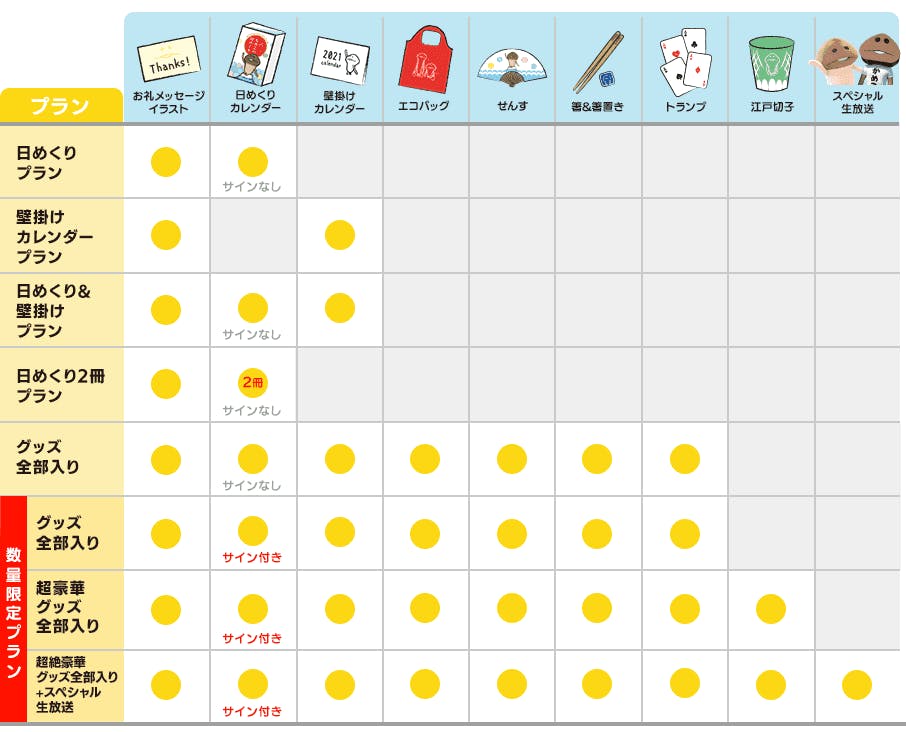 「グッズ全部入りプラン」「豪華グッズ全部入りプラン」「超絶豪華グッズ全部入りプラン」に付属します。単体で購入できるプランはありません。