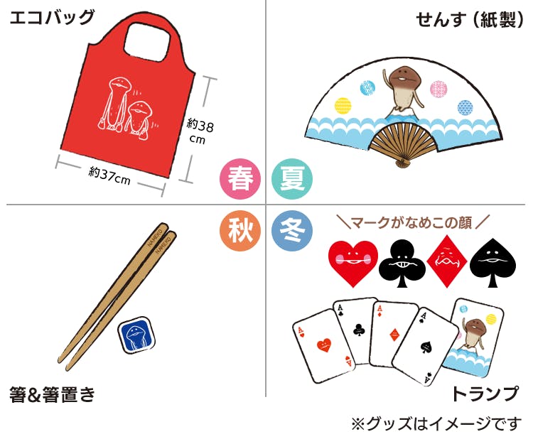 春夏秋冬をテーマにしたクラファン限定グッズです。