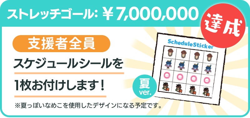 支援総額700万円達成で、支援者全員にプラン1口につき1枚「スケジュールシール 夏ver.」をお付けします。