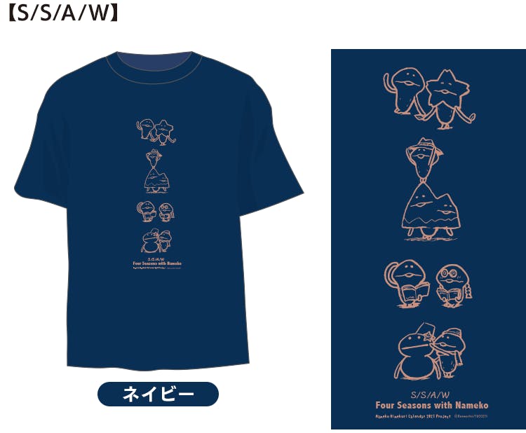 オールシーズンなめこと一緒だよ♪ 春夏秋冬のなめこ達がデザインされたTシャツです。