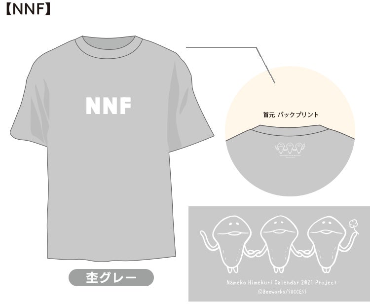 “大人が着やすい”がコンセプト。なめこの鳴き声「んふ(NNF)」がデザインされたシンプルなデザインのTシャツです。